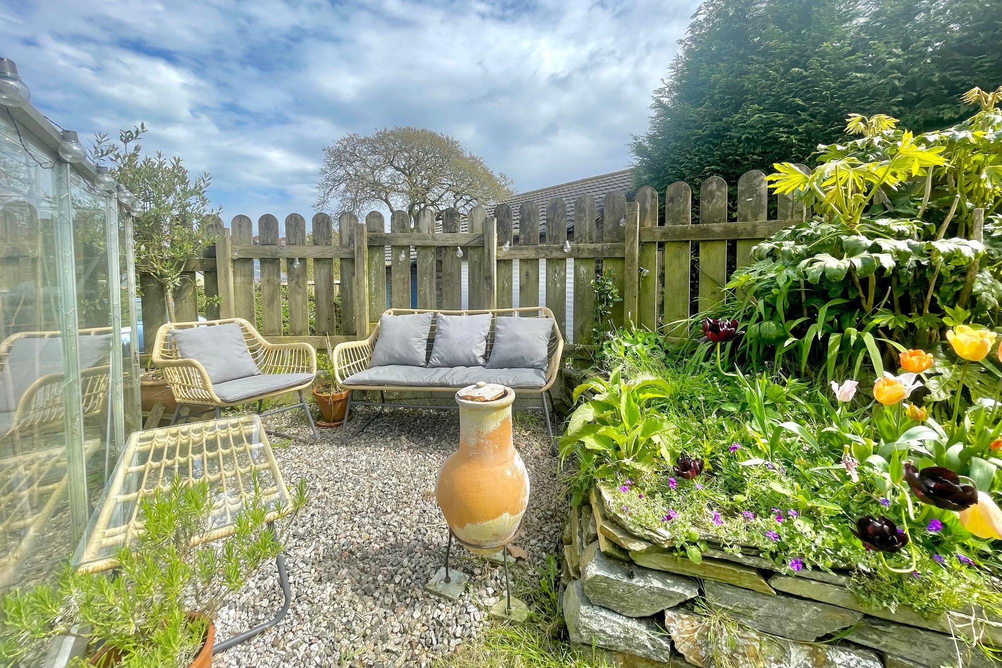 UPVC double-glazed sun room with door leading out to the garden, glazed roof. Tiled floor.