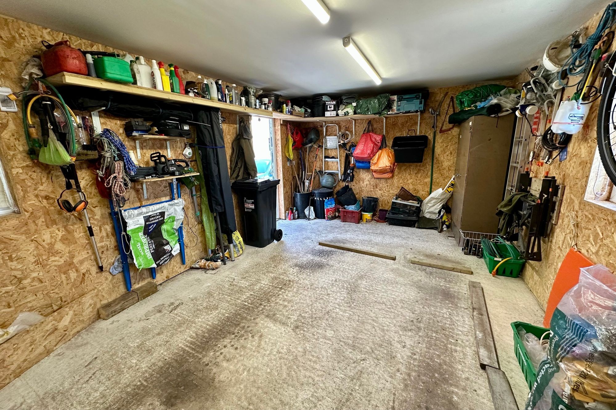 UPVC double glazed door to side patio area and UPVC double glazed window to rear. Modern white gloss finish base units with space for white goods and stainless steel sink with swan neck mixer tap. Double wooden doors to storage cupboard. Underfloor heating. Wooden door into…..