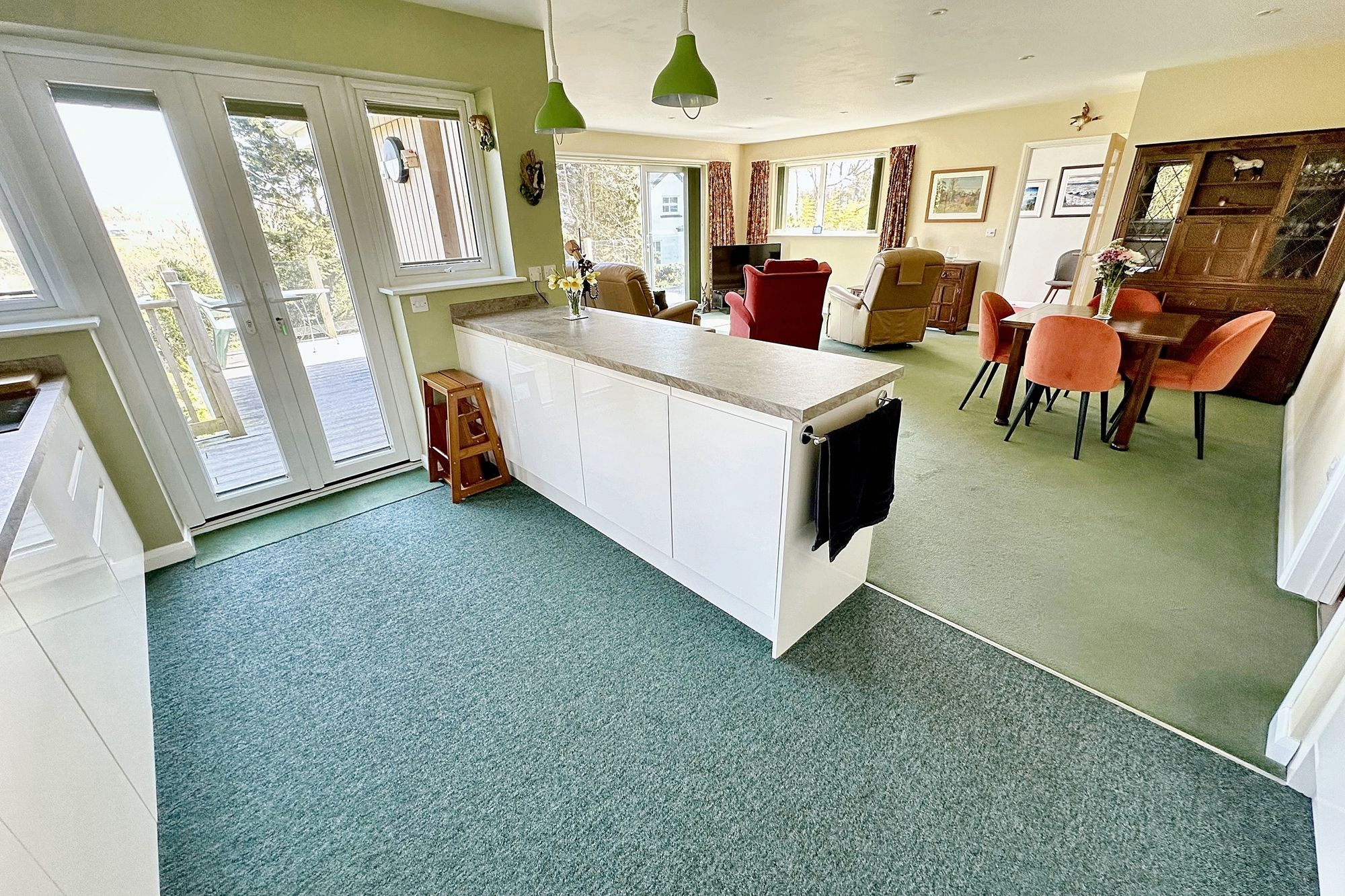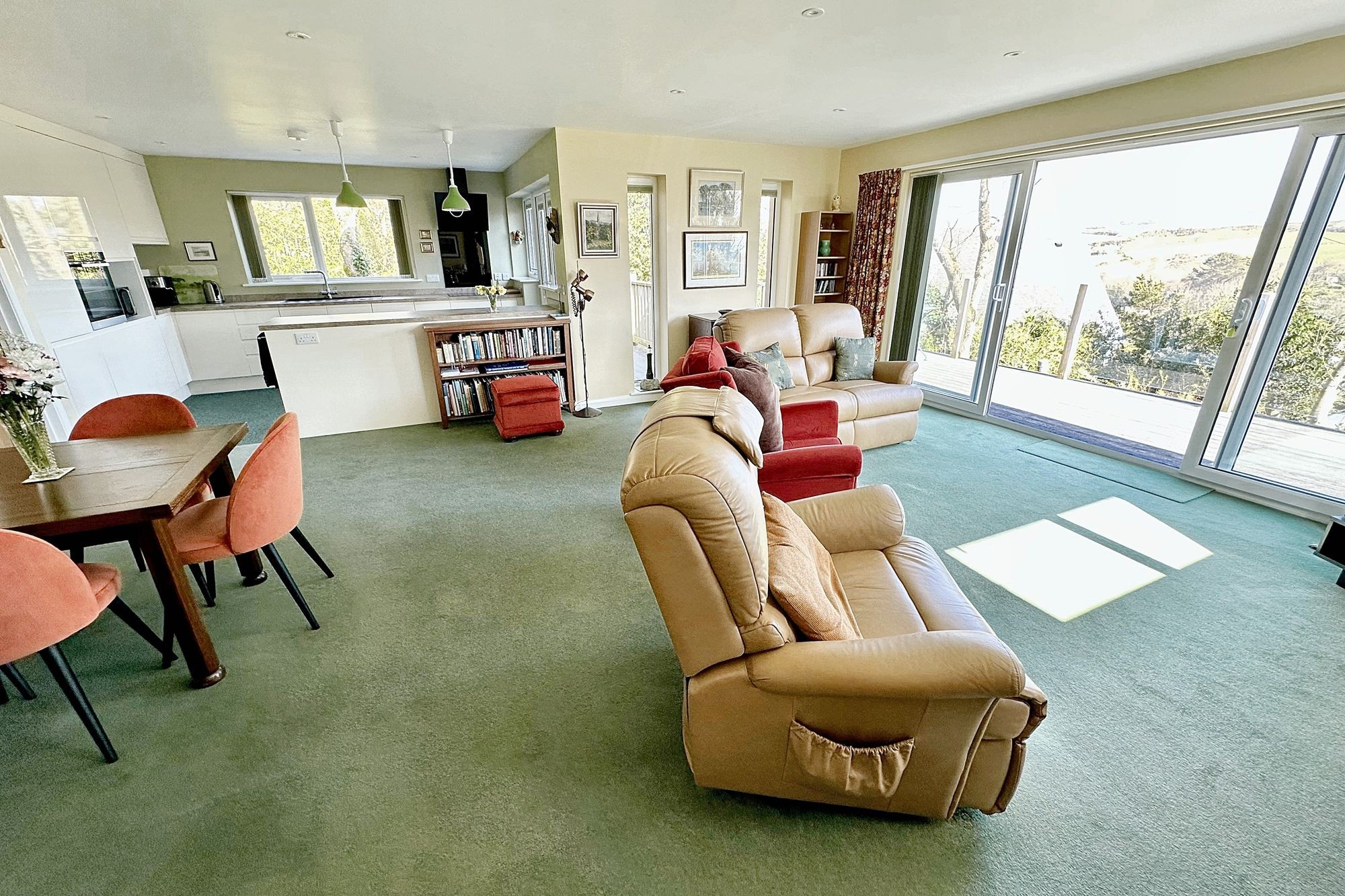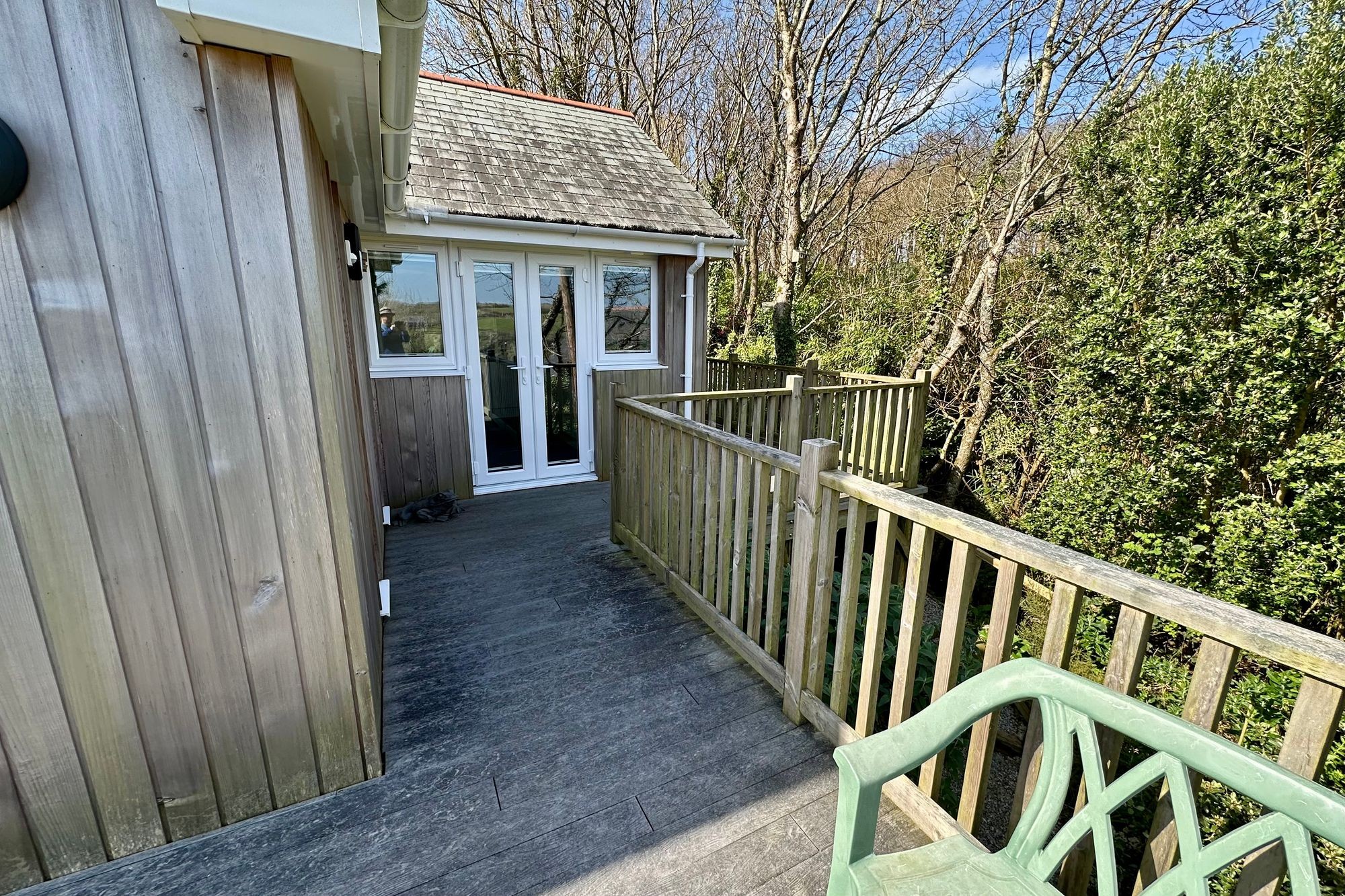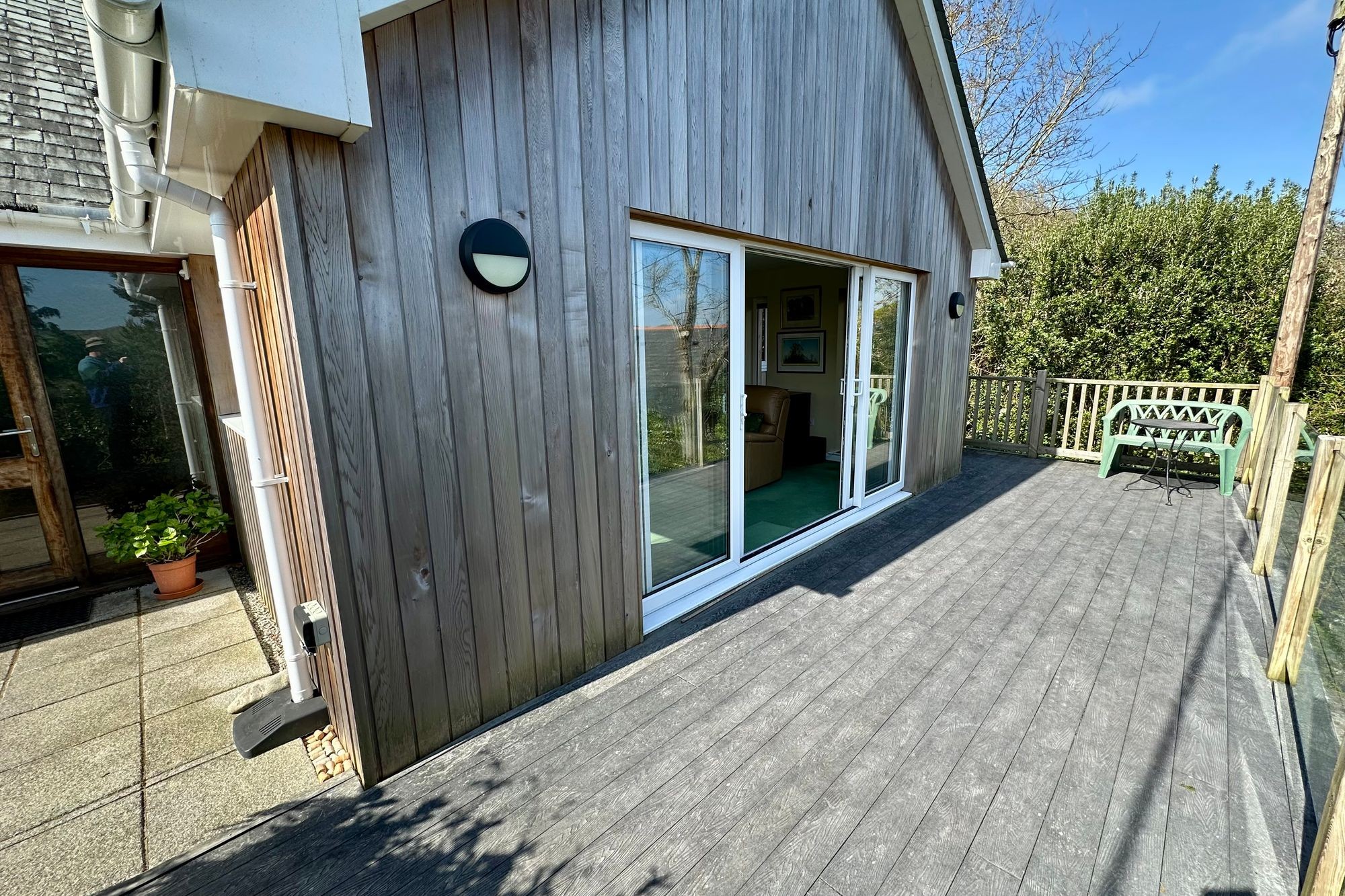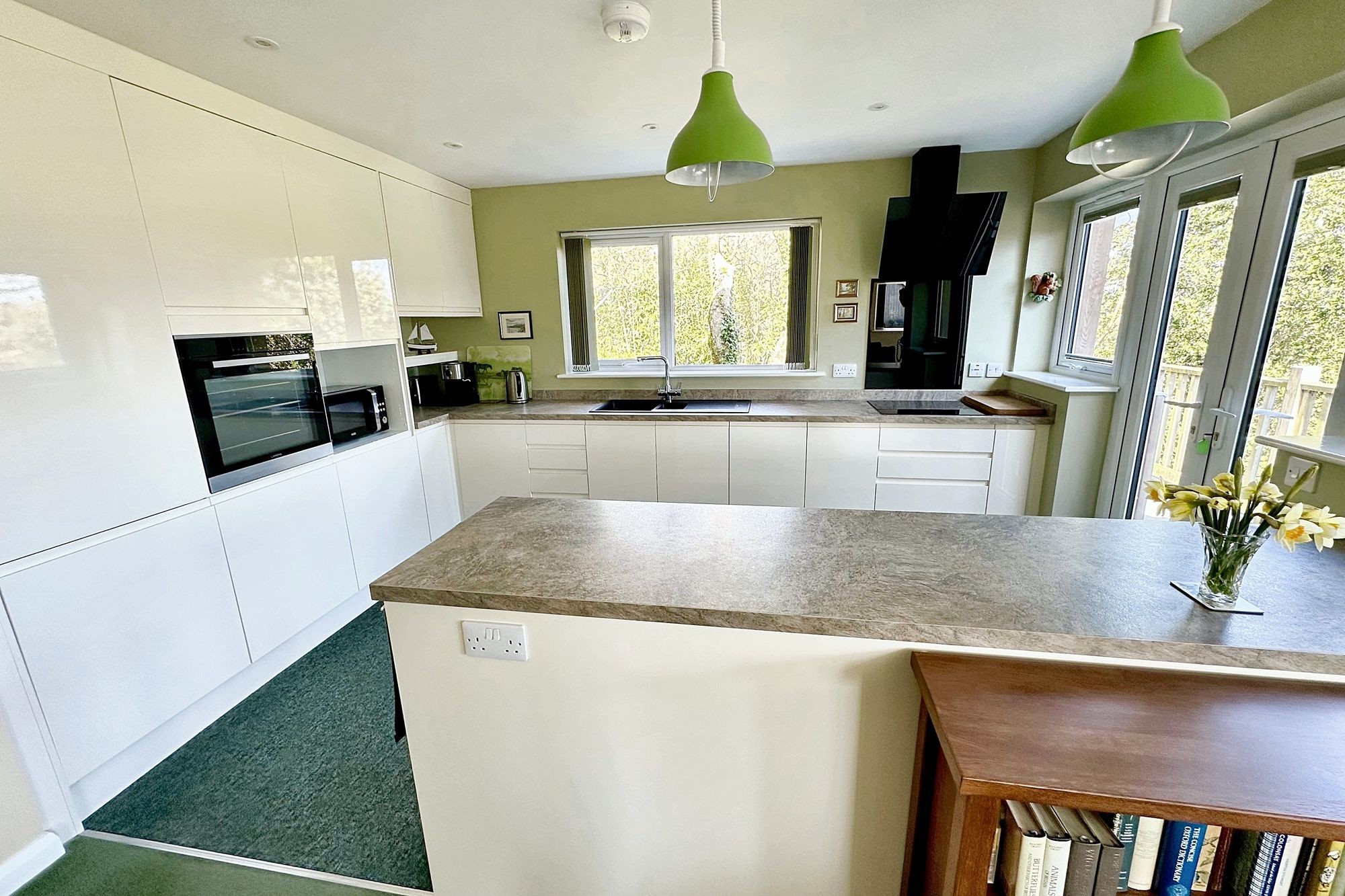 Built in 2020 to exacting standards this property is both detached and spacious. Nestled amongst the trees and countryside it blends in with the beauty of its surroundings thanks to the European red cedar cladding. With its position sitting above the village there is an abundance of natural light, privacy and peace. The accommodation is spacious and the decor well-presented, the open-plan living area is well designed and brings the outside in thanks to the huge balcony/terrace and large window and sliding patio doors. Should this be a home or holiday home we are sure the new owners will be delighted to hear how efficient it is to run….solar hot water, air source heat pump, argon filled uPVC double glazing and rainwater harvesting system for sanitary use.