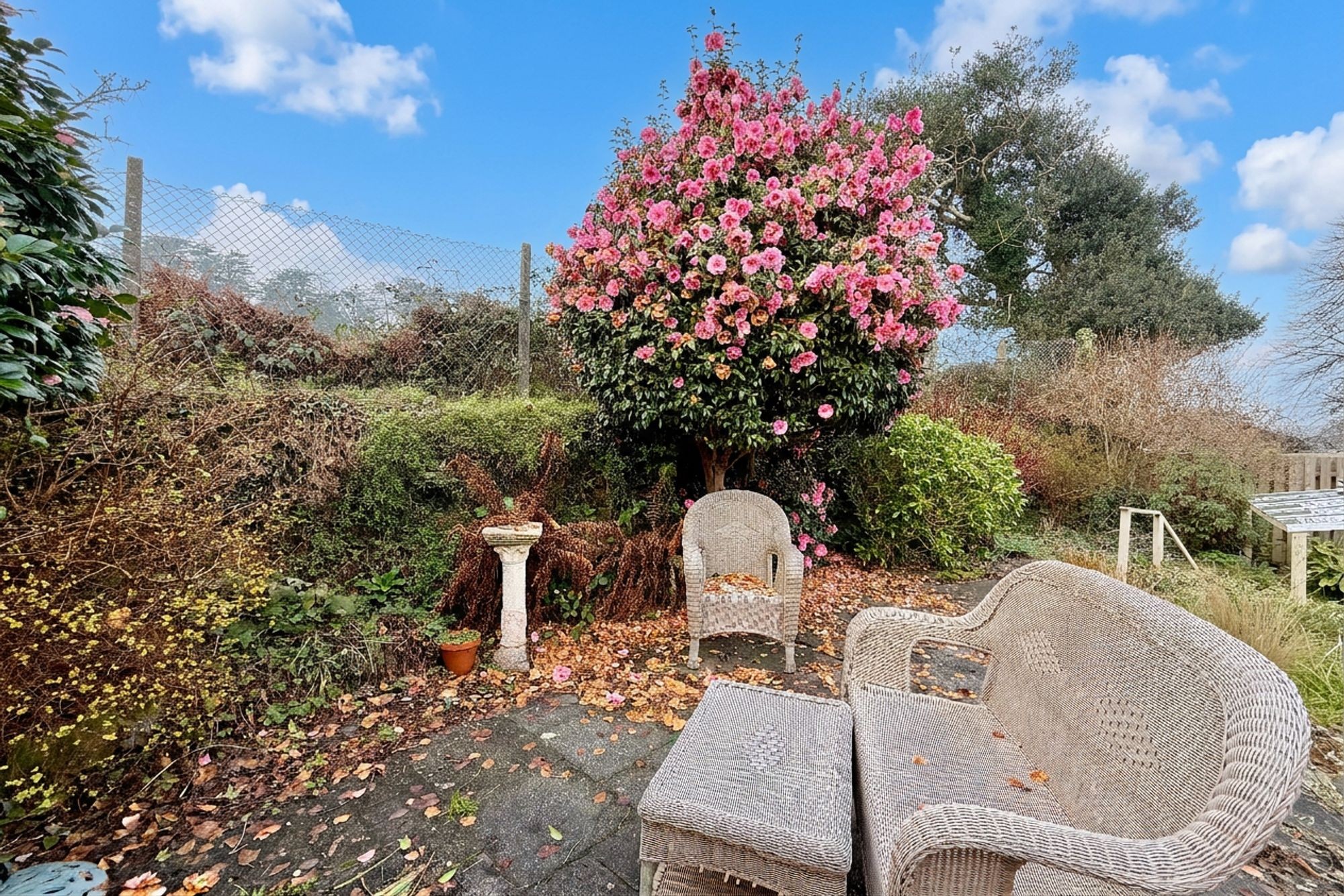 Located at the rear of the conservatory and accessed via a short covered walkway via the garden.
