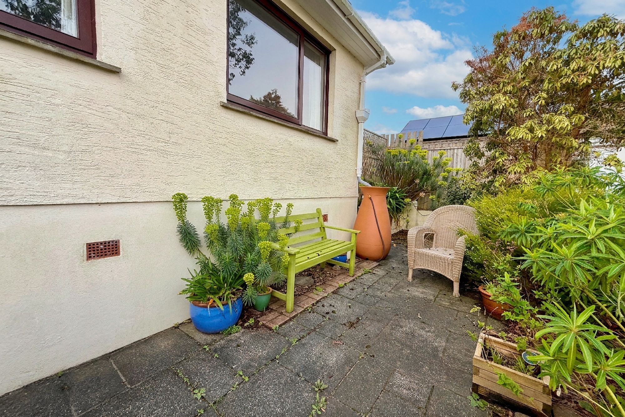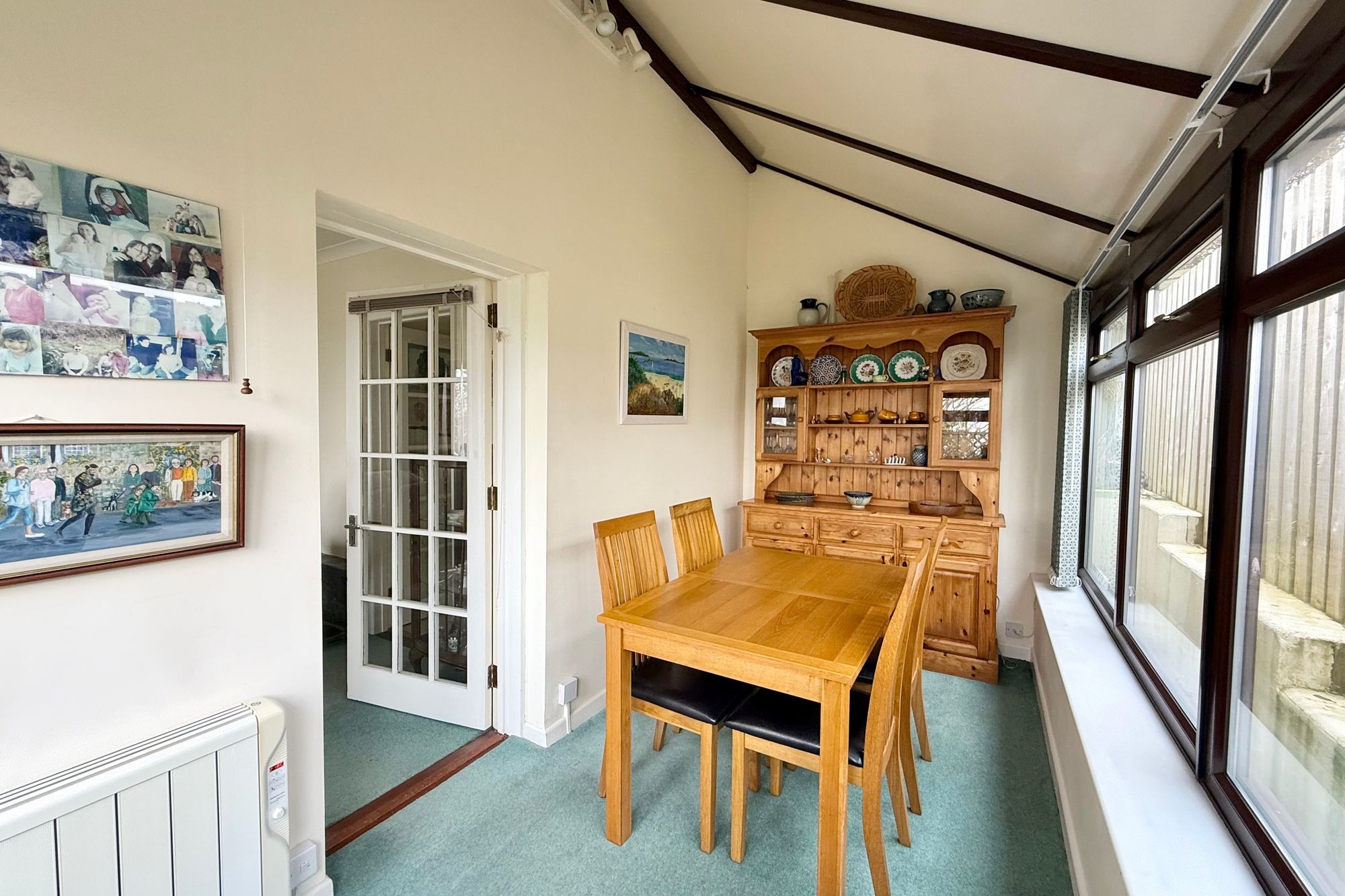 A very useful addition, with insulated roof, built on the side of the property, with a door to the front, this room has many uses…..home office, dining room or even an extra occasional bedroom.