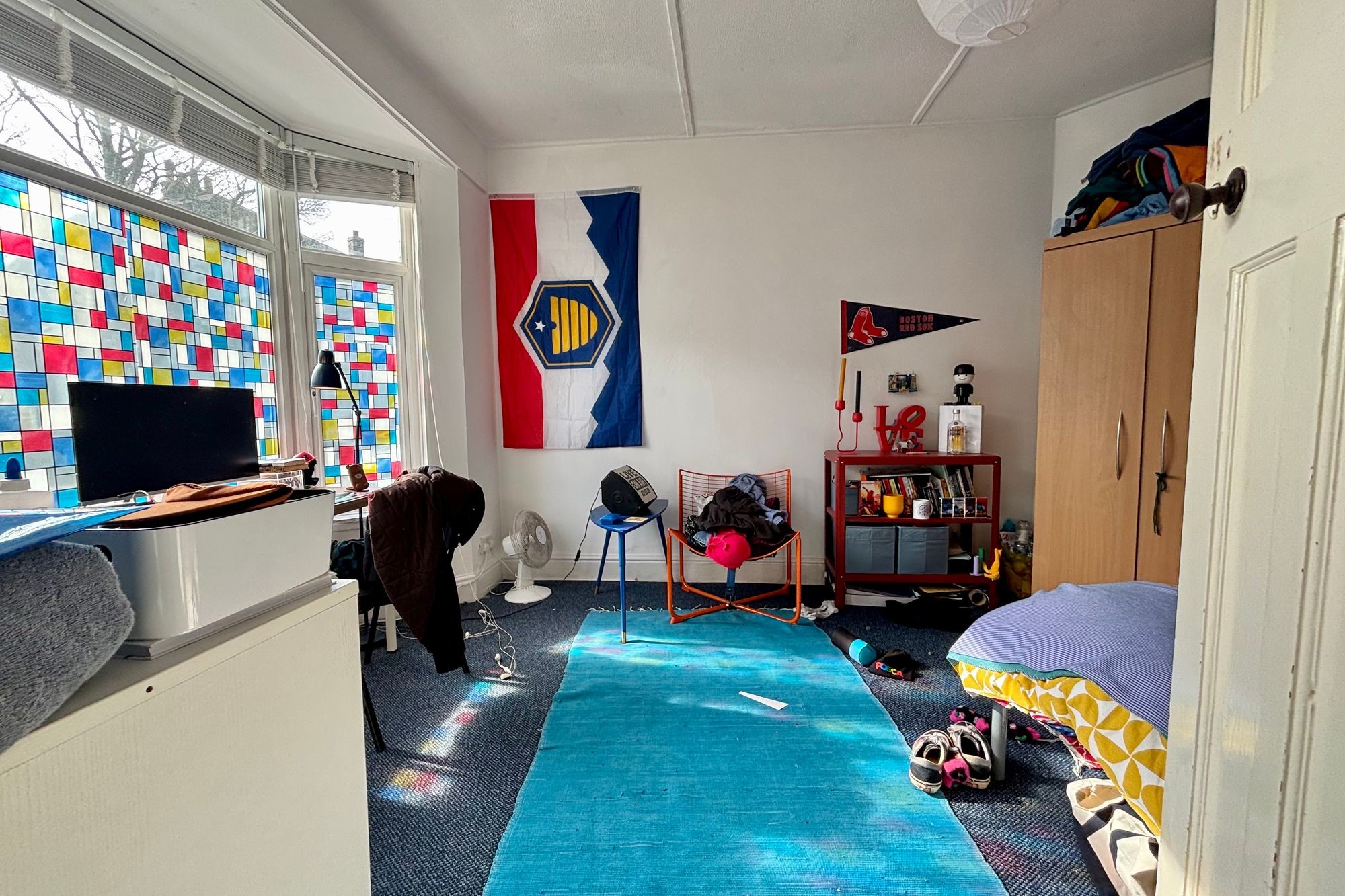 uPVC double glazed bay window with obscuring film. BT fibre broadband point. Radiator