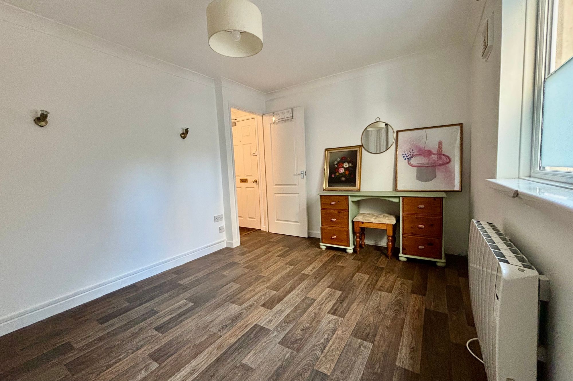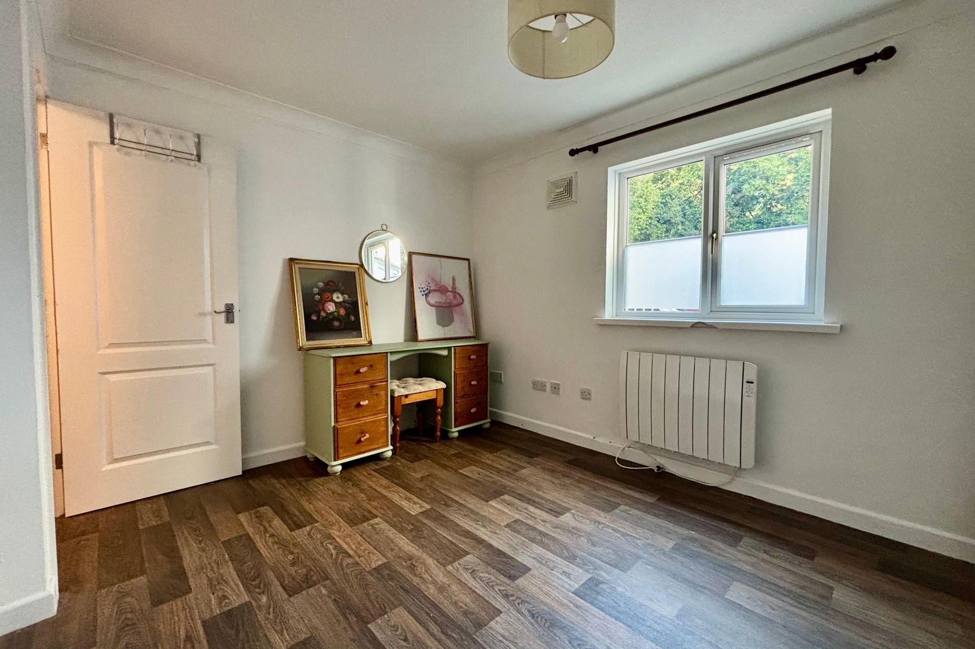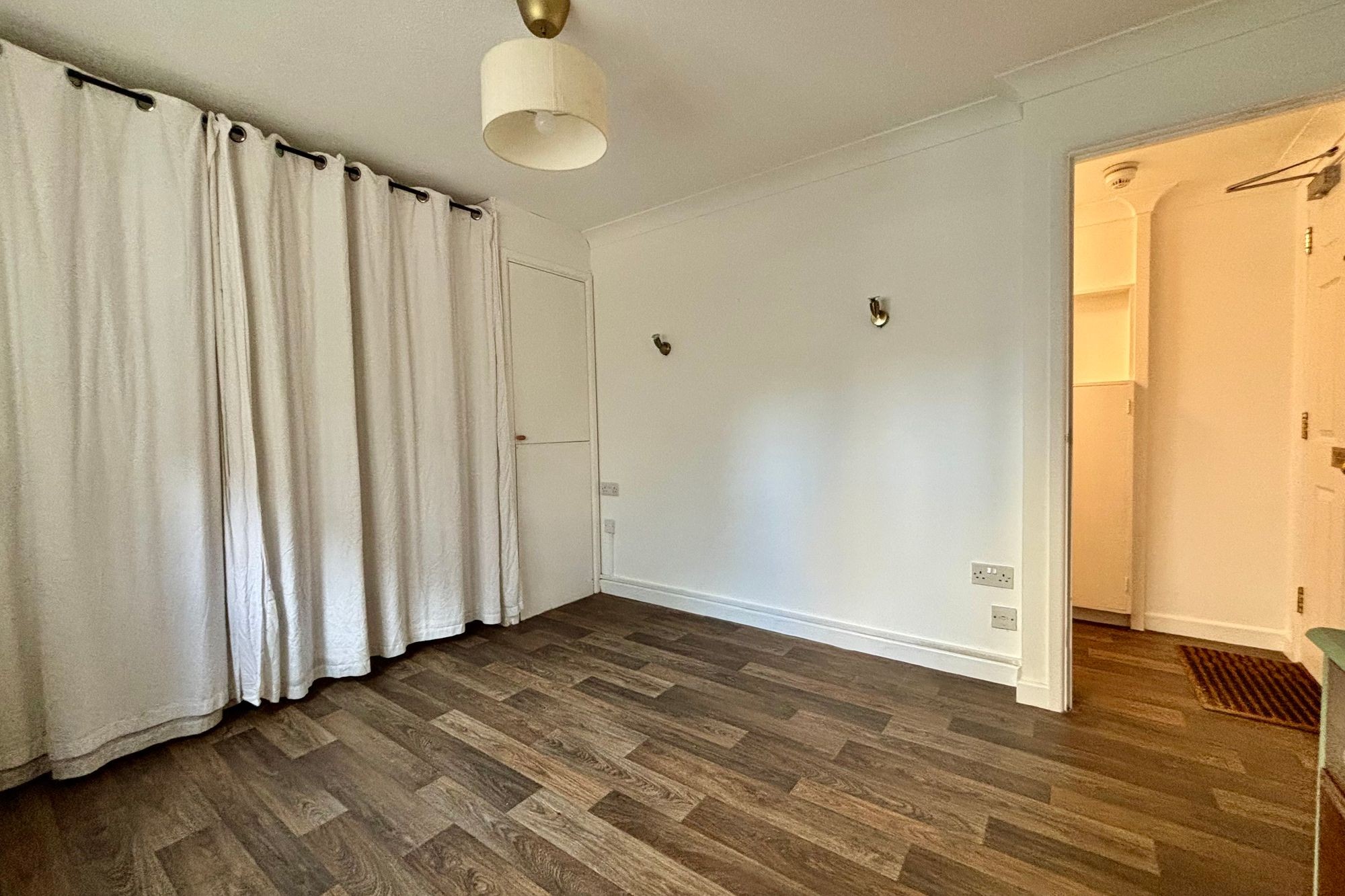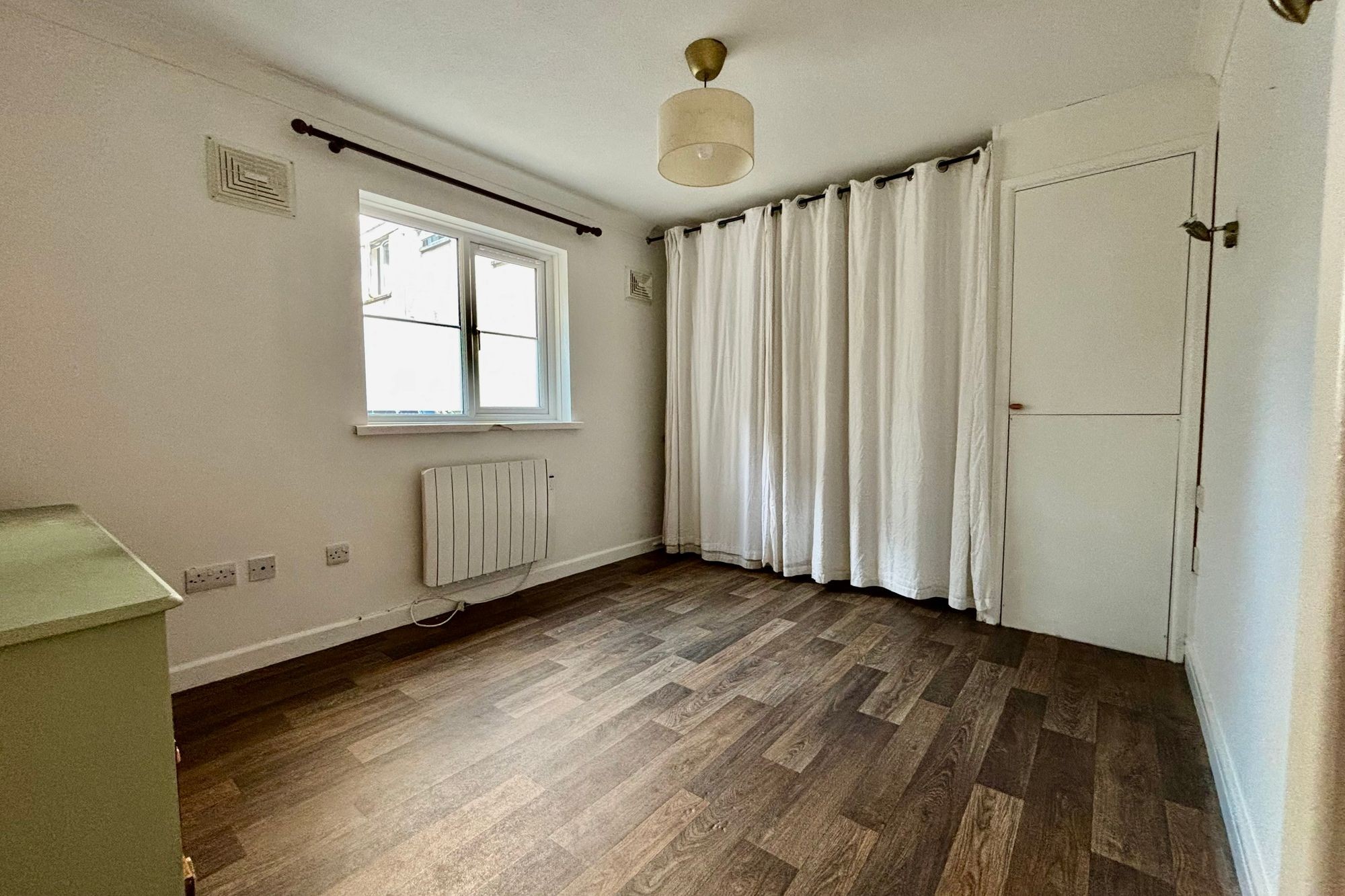 UPVC double-glazed window. Electric radiator. Wood effect laminate flooring. Wardrobe space with curtain. Cupboard containing hot water tank and immersion heater with shelving.