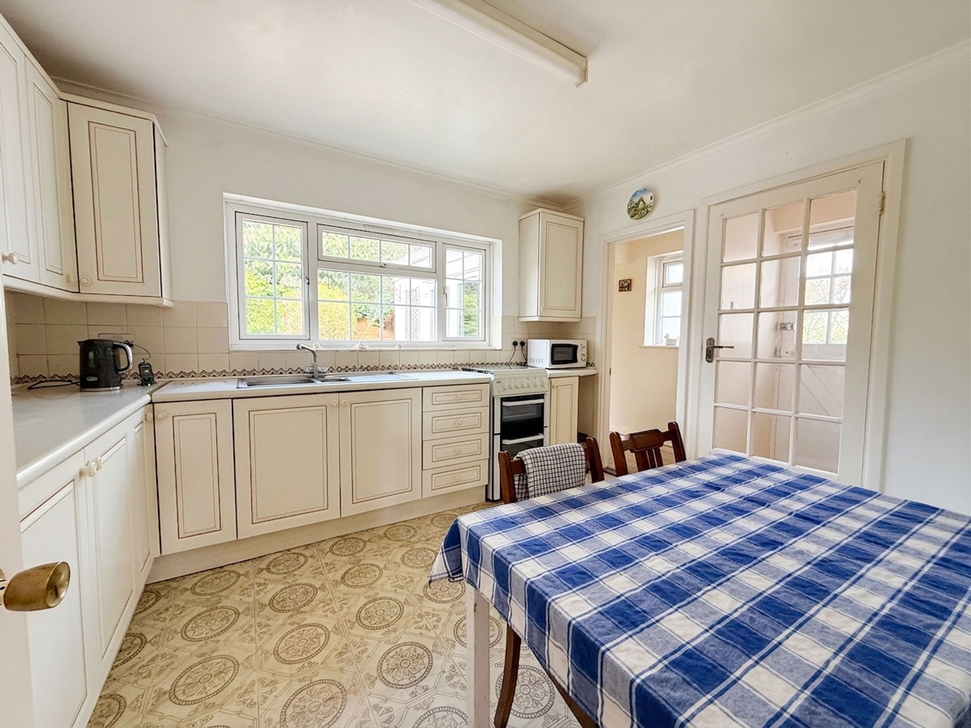 UPVC double glazed window to front. Radiator. Telephone point. Archway through to two bedrooms and bathroom. Fitted cupboard housing the 'Worcester' gas fired boiler fuelling radiator central heating and hot water supply. White panelled doors to kitchen/ breakfast room (and dining room/bedroom three beyond), and to…