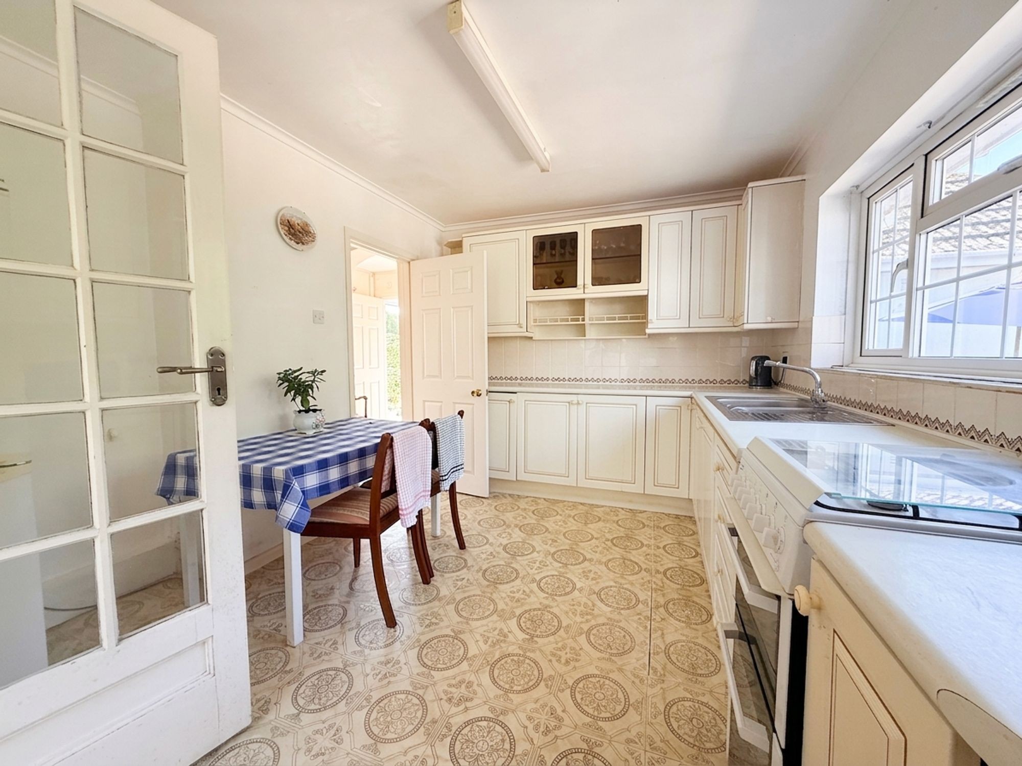 Bungalows that become available for sale in Tredova Crescent are newsworthy and in much demand. Spindrift, Number 2 is particularly interesting, since its price point is lower than is normally associated with this prime address. It is a delightful bungalow which could be further enhanced with an updated kitchen and bathroom, indeed, although comfortable ‘as is’, there is also scope to expand ‘upwards’, subject to necessary consents. Spindrift presents two double bedroom accommodation with the flexibility of a separate dining room, or third bedroom if preferred. The property is screened and set nicely back from the road and pavement by a prolifically stocked garden, whilst the rear paved garden is private, enclosed and sheltered. The driveway parks two cars in tandem, leading to a single garage. Whether you are buying to enjoy ‘as is’, or with thoughts of an altogether grander design, this might be your perfect opportunity!