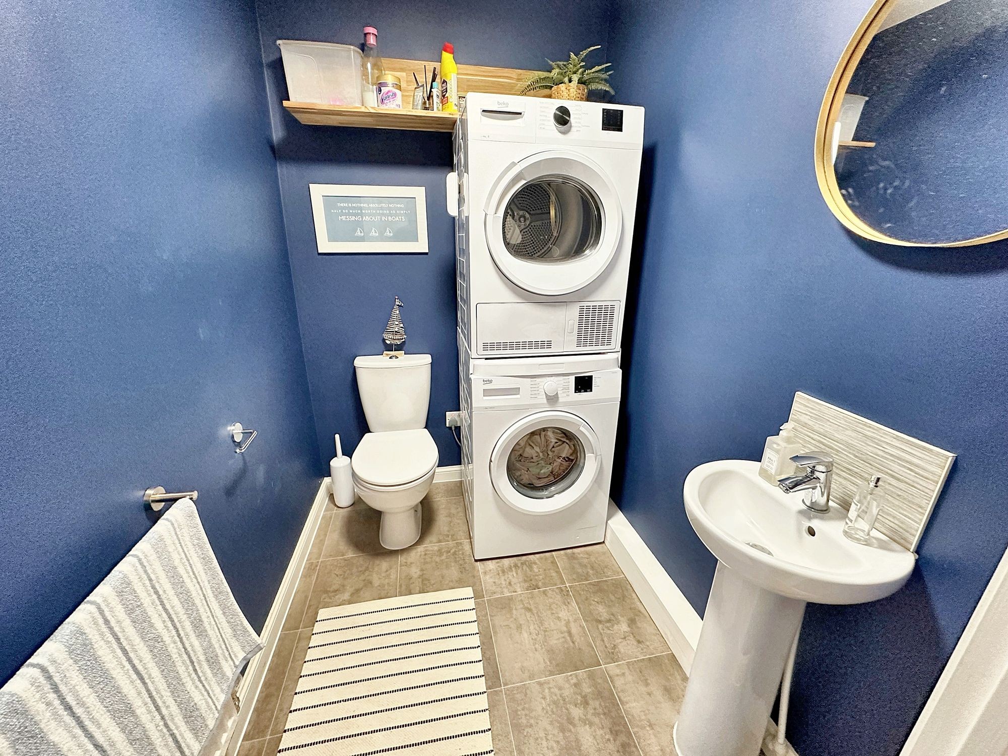 White WC and hand basin. Space and plumbing for washing machine and tumble dryer. Extractor.