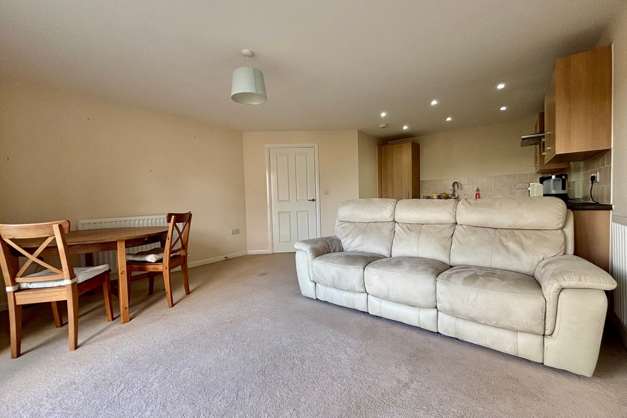 Entering through a wooden fire door. Fibre broadband point. Fusebox. Radiator. Wooden Doors lead to bedrooms, bathroom and…..