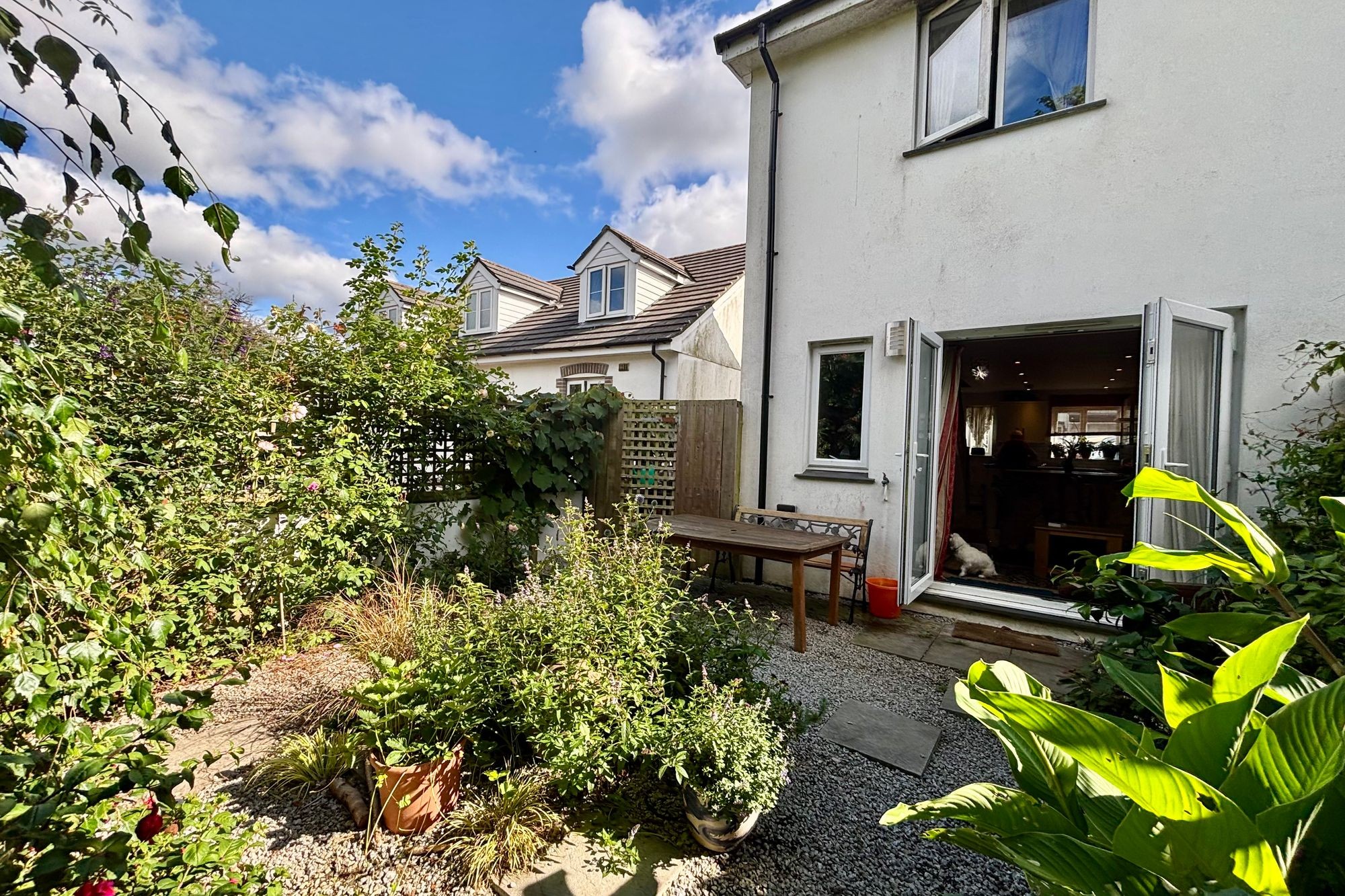 Tucked away at the end of a quiet road within a small development, 4 Shaws Reach is a modern, semi-detached two-bedroom home offering a superb balance of comfort and practicality. The front of the property features a pretty, pitched porch and off-street tandem parking for 2–3 cars. Inside, you're welcomed into a bright and spacious open-plan living area that creates a wonderful sense of space and sociability. The well-equipped kitchen provides generous worktop space and integrated appliances, while French doors at the rear open onto a beautifully mature and well-stocked garden—complete with a useful side area for storage or future potential. Upstairs, the master bedroom enjoys peaceful views of greenery, accompanied by a second bedroom and a well-presented bathroom. Additional benefits include UPVC double glazing throughout, solar panels on the roof, and a high EPC rating, making this home both energy-efficient and low-maintenance.