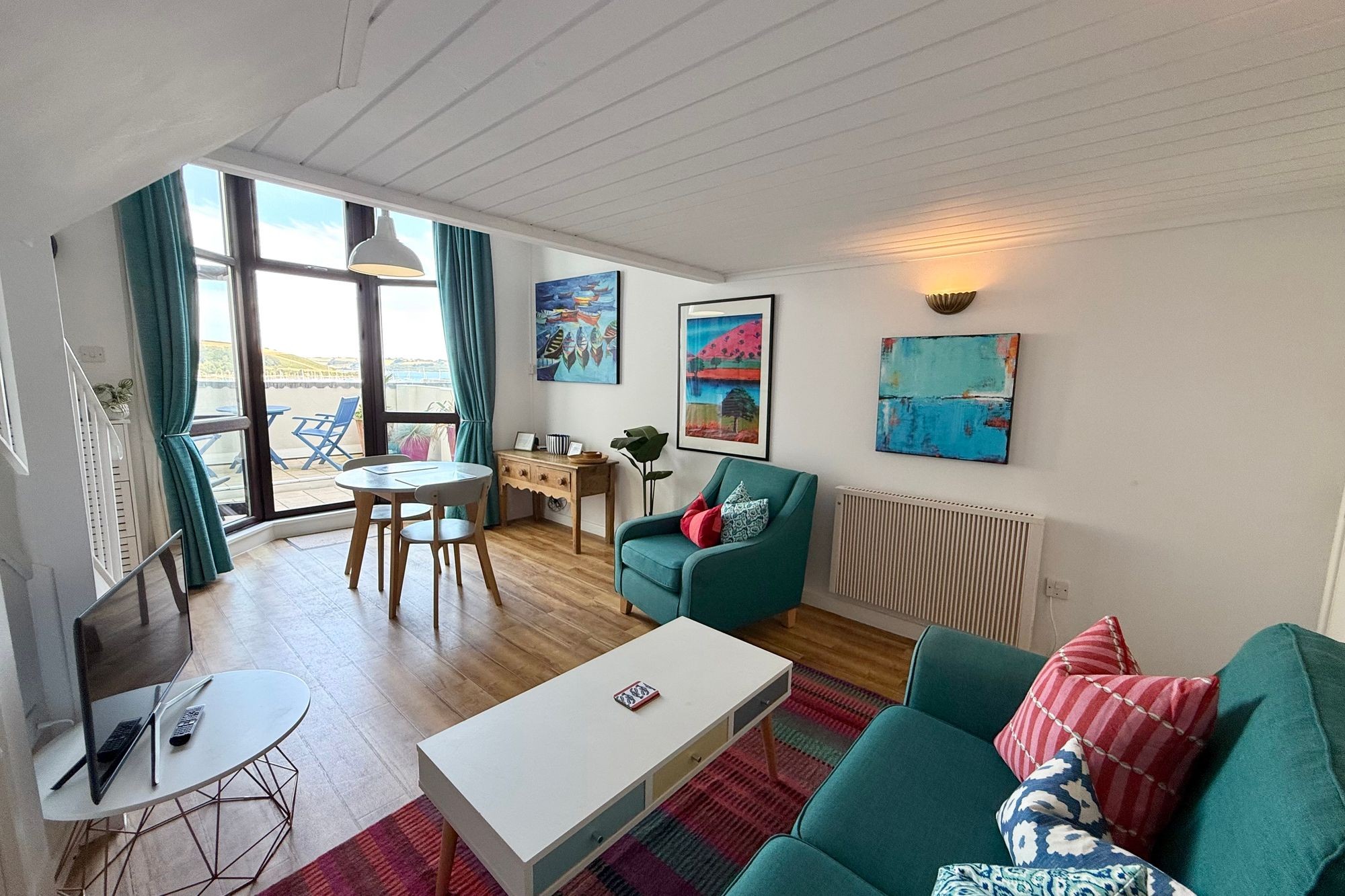 We are delighted to offer for sale this charming waterside property, a rare opportunity within the ever-popular Packet Quays development. As the original sole selling agents for these unique homes when new, we remember how swiftly they were snapped up “off plan” – and it’s easy to see why. Larboard was developed in the 1990’s and has been renovated recently to a high standard to include a new kitchen, bathroom and a complete cosmetic upgrade throughout the apartment. Set in a truly remarkable position, this delightful home boasts breathtaking, uninterrupted views across Falmouth Harbour to Flushing, the coast, and the estuary. Compact yet full of character, the accommodation is thoughtfully designed to make the most of its setting. The open-plan lounge/dining area enjoys a striking double-height ceiling and opens directly onto a private balcony terrace – perfect for soaking in the scenery. A well-appointed galley modern kitchen sits just off the living space, ideal for holiday stays or easy everyday living. A mezzanine bedroom overlooks the main living area, adding charm and light via a gallery effect and still enjoying the water views at this level – a wonderfully nautical touch. The property also benefits from a secure, allocated underground parking space located just opposite, at the top of the High Street. From there, a level pedestrian route leads conveniently to the apartment or into Falmouth town centre, placing cafés, shops, and the vibrant harbourfront all within easy reach. Currently operating as a successful holiday let, this property is offered with vacant possession and no onward chain – making it an ideal ‘lock up and leave’ bolthole, full-time residence, or high-performing investment.