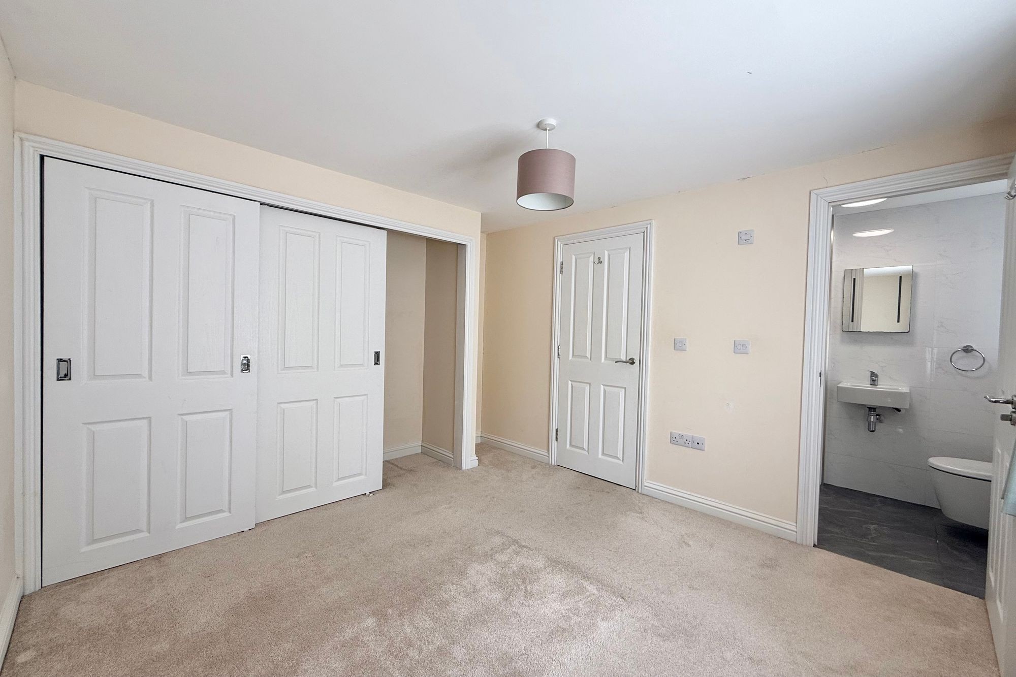 Dual aspect with double glazed windows to the front and rear aspect. Fitted wardrobes with sliding panel doors, hanging rail and shelving. White panelled door accessing the shower en-suite. TV aerial and multiple plug sockets. Recess area for potential storage. Radiator.
