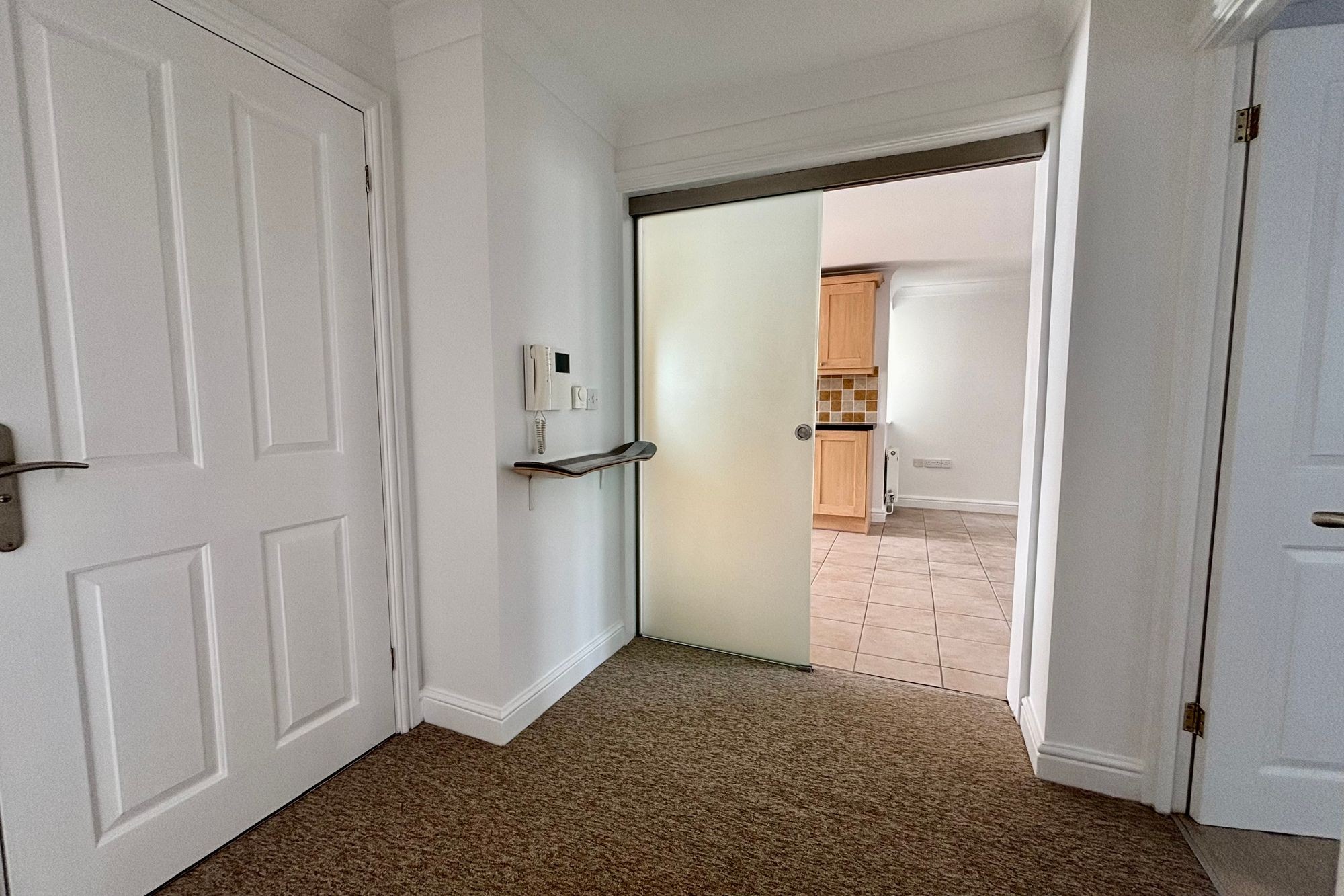 Wooden doors to bedroom one, two and the bathroom. Radiator. Intercom entry system. Glass sliding door into…..
