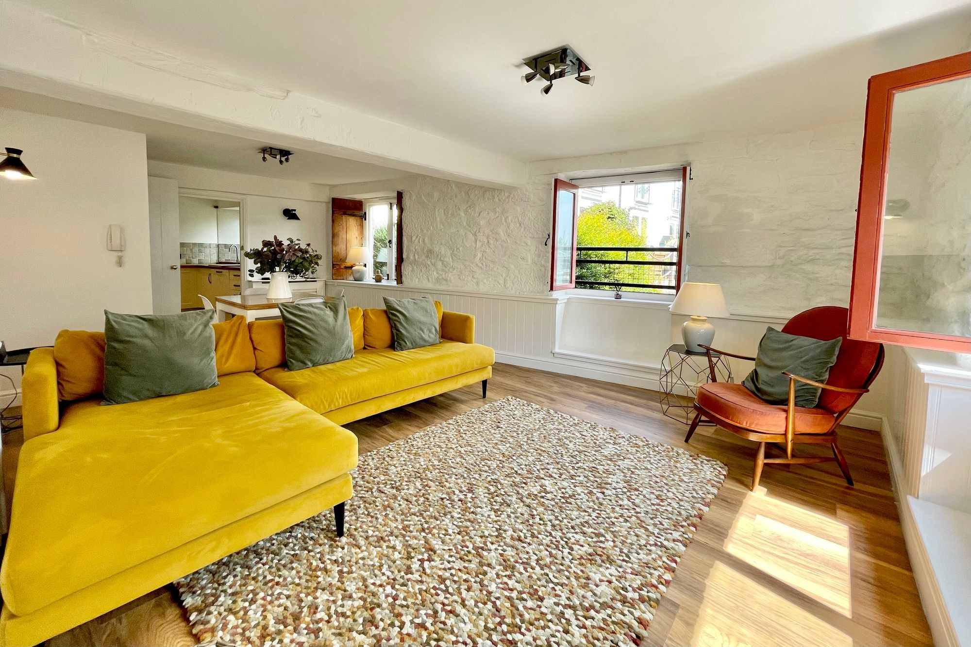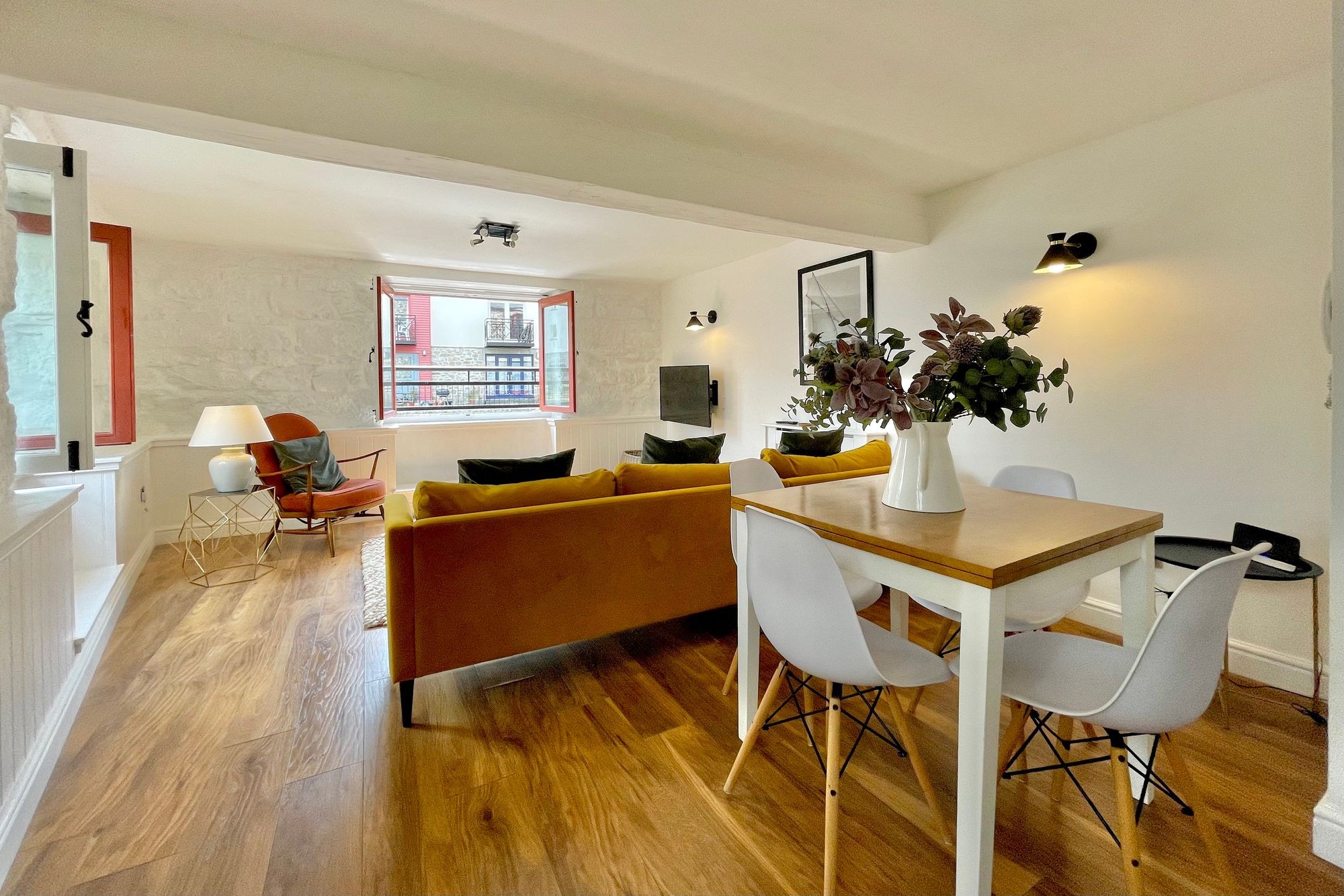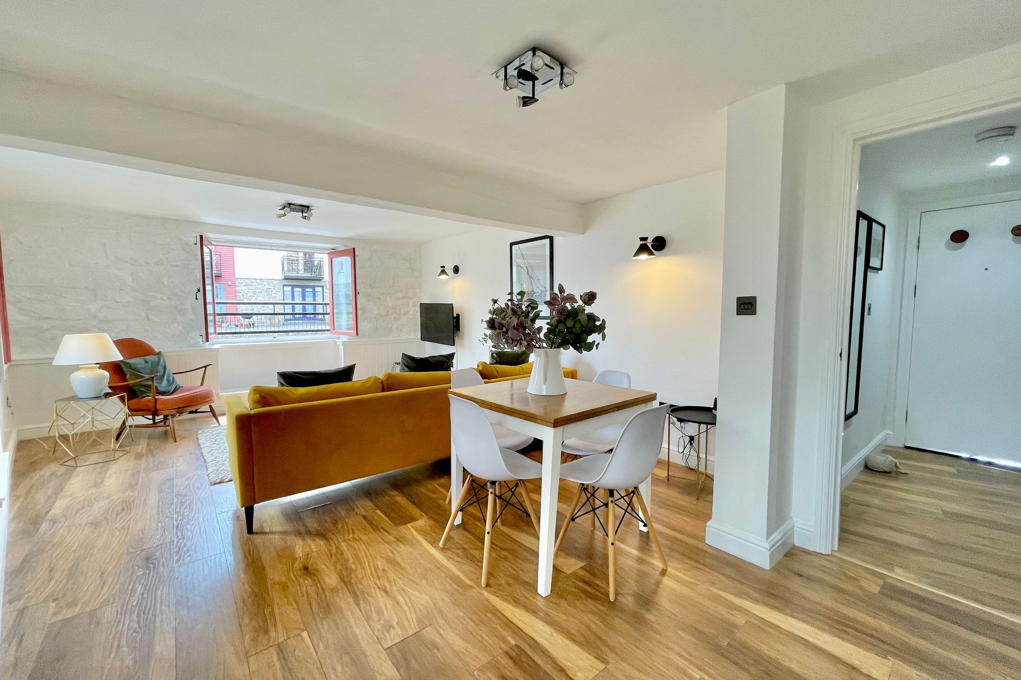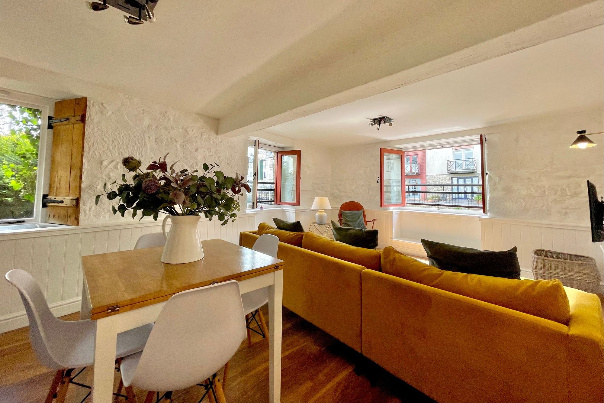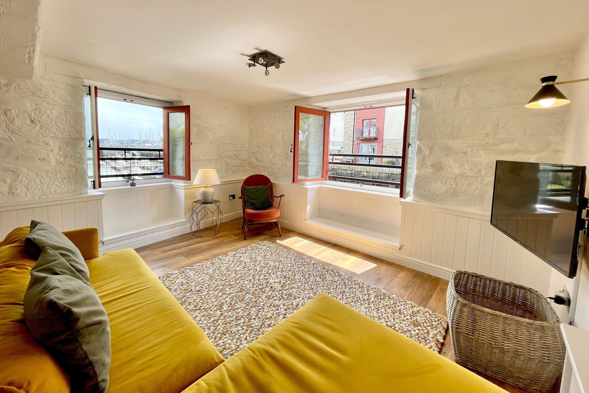 The historical Daniel Sail Loft is a conversion of a magnificent Grade II listed granite riverside building into six apartments. Apartment 1 is located on the ground floor in a prime ‘Southerly facing’ position enabling great views over and up the river, to the footbridge and also towards Penryn Bridge and shoreline beyond. This characterful property retains reclaimed and original characteristics from the former wharf, incorporating shuttered windows, beams, lintels and posts together with whitewashed granite walls and we believe is a rather special apartment here in the Harbour Village. There is a resident Kingfisher in this stretch of the river and swans, egrets, mullet and bass come and go on the ebb and flow of the tide. The apartment is a spacious throughout with two double bedrooms and generous sized sitting/dining room where one can open both windows and feed swans below the seated windows. Complete with a designated parking space, this would make an exciting permanent, holiday or letting investment opportunity and is ready to move into due to being looked after and currently a successful Airbnb holiday rental. Please get in contact for further information on the Airbnb investment figures and will be sold vacant possession with no onward chain.