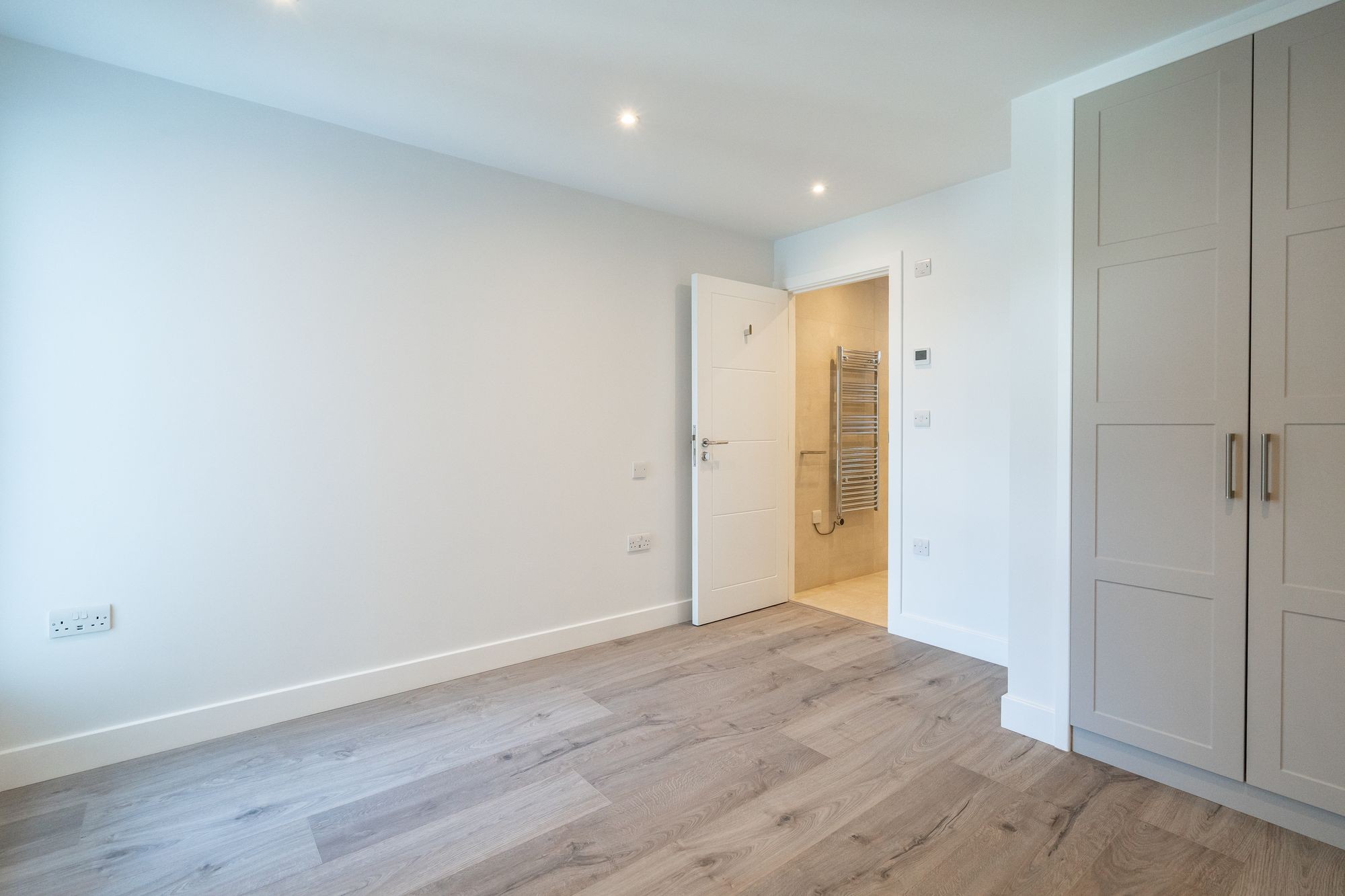 Another good-sized double bedroom with double glazed window to the front aspect facing Southerly. Plug sockets with USB, TV aerial and ethernet points, fitted wardrobes with shelving and hanging rail and ceiling spotlights. Continuation of underfloor heating with thermostat controls.