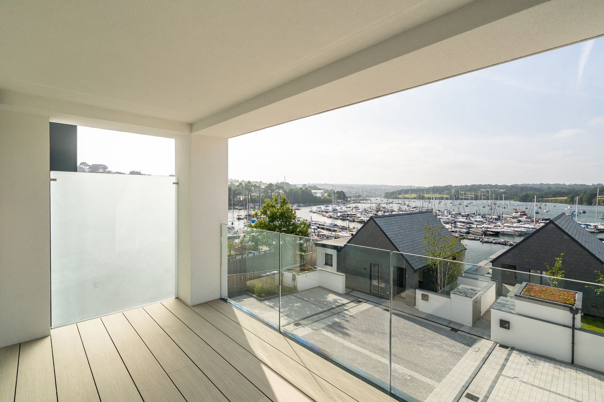 A much larger than standard balcony terrace you would normally expect with an apartment, providing covered shelter and privacy with obscure glass to the side aspect. Views towards Penryn River over rooftops and enjoying plenty of room for outside dining, a potential storage area and a glass balustrade. Composite decking, outside plug sockets and outside lighting.