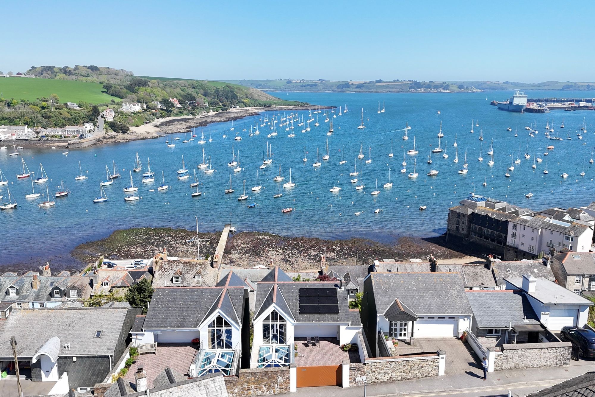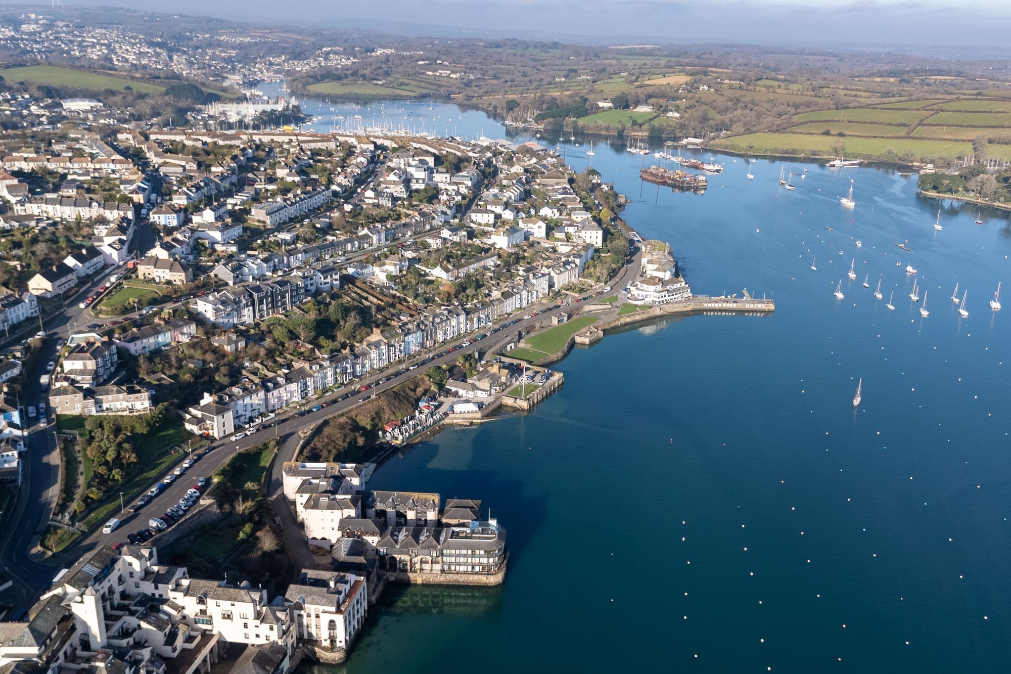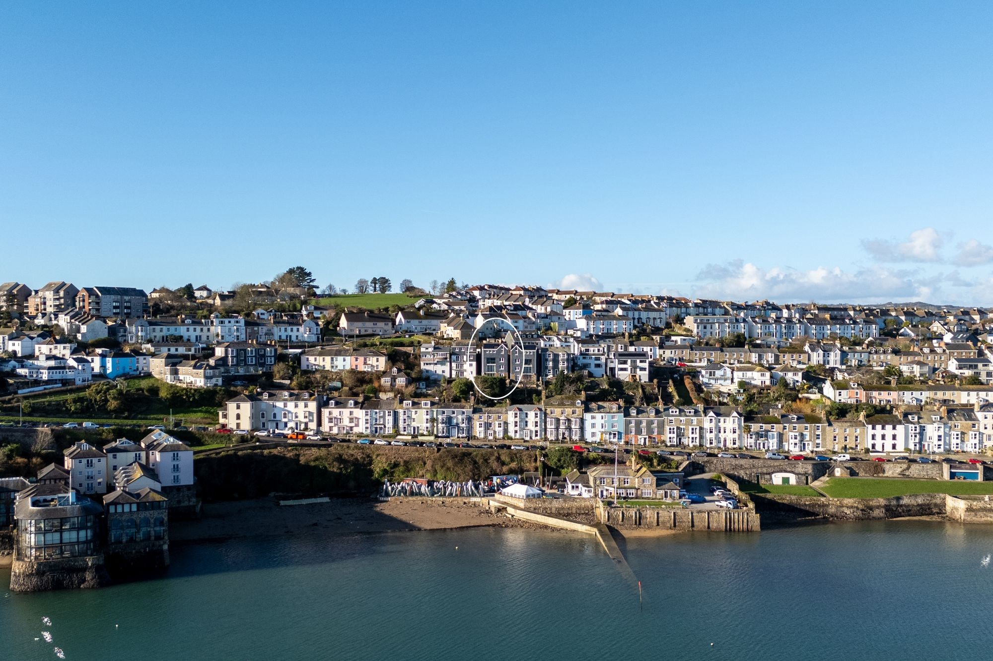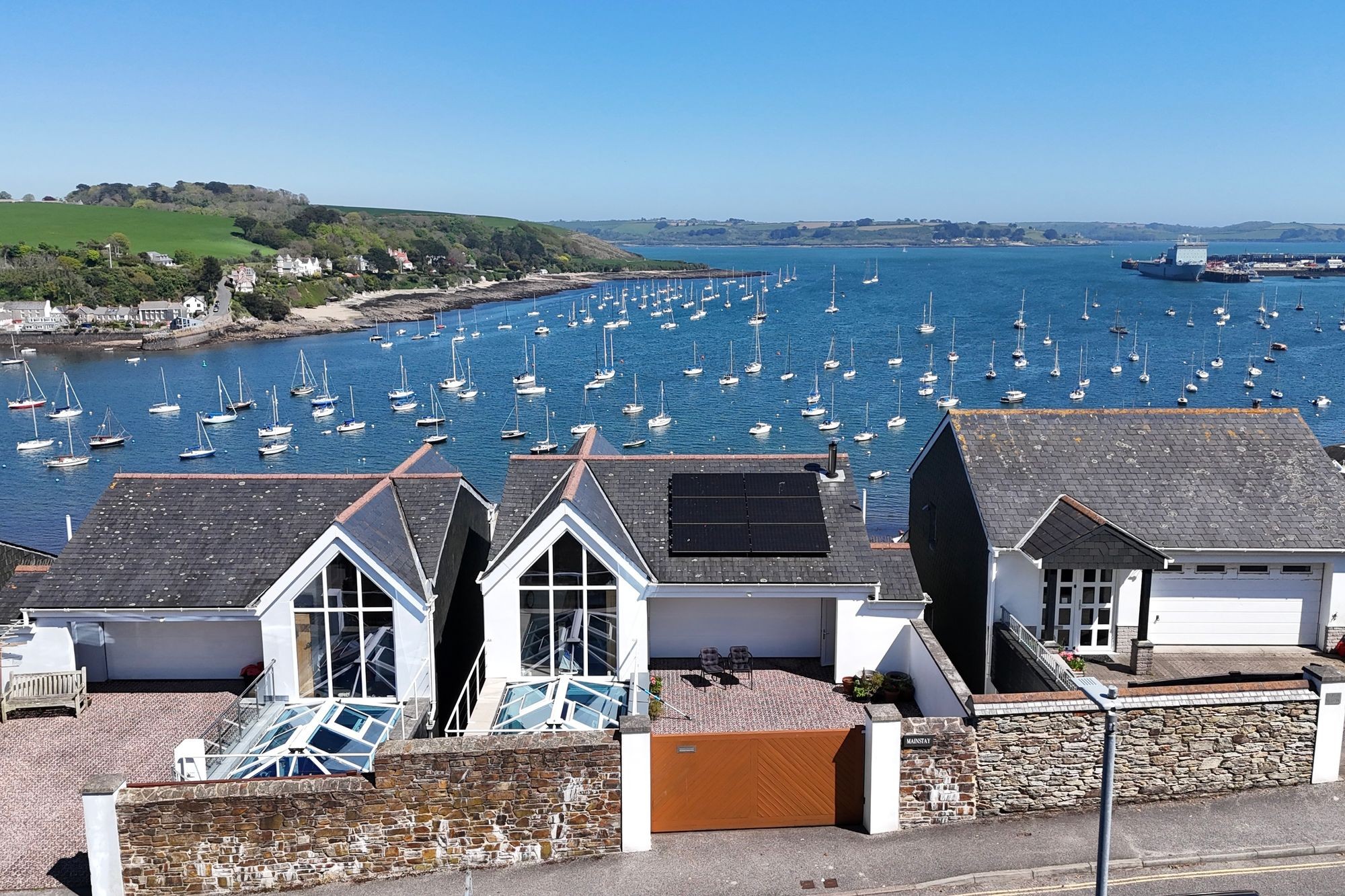 Penwerris Terrace is one of Falmouth's most sought after and valuable residential roads. It is set up high with phenomenal harbour and coastal views, yet within a few minutes' walk from the town and waterfront. The original Penwerris Terrace contains some of Falmouth's earliest and finest Regency houses, several of which were built for Packet Ship captains; the position no doubt chosen for its commanding marine outlook and convenience to the shore. The lovely rear gardens of the harbour fronting period houses in front, along Dunstanville Terrace and Greenbank, run up to Penwerris Terrace. During the 1900s, their value as building plots was recognised, and several homes have been built since, in this outstanding position. Mainstay, alongside Topsail are the most recent and arguably most spectacular homes built along this exclusive road. So much of what delights about Falmouth is on one's doorstep at Mainstay. The waterside is a few moments away as is the High Street with its individual shops and galleries, whilst The Boathouse, Star & Garter, or more up market Royal Cornwall Yacht Club and Greenbank Hotel are one's 'locals'. Falmouth’s Marina is fifteen minutes' walk away. The town has a brilliant and diverse selection of restaurants and an eclectic mixture of shops, which include national chains, together with quality galleries showcasing local talent.