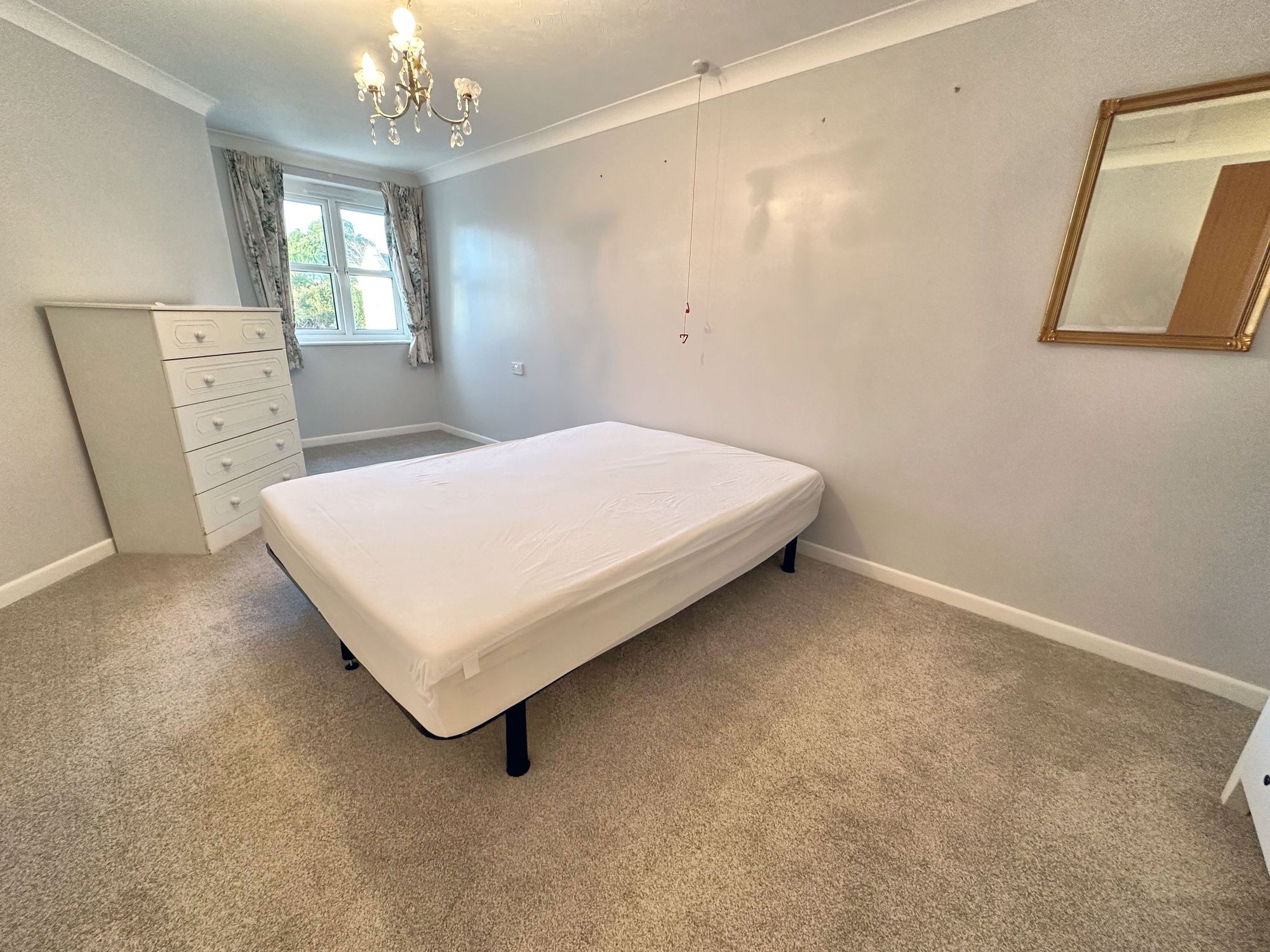 Double bedroom with a built-in mirror fronted wardrobes. UPVC double glazed window to rear overlooking the communal garden. Electric heater. Emergency cord.