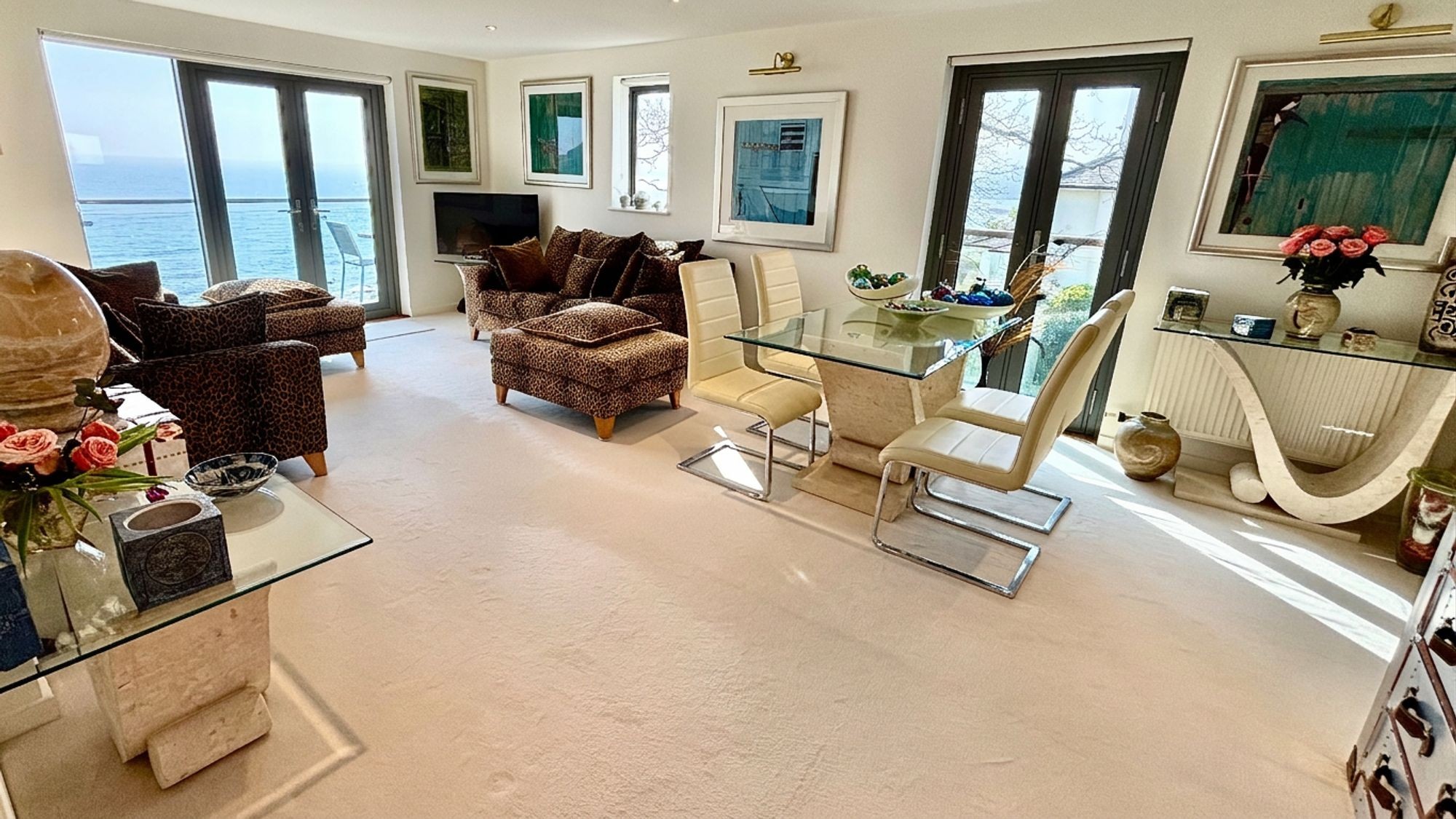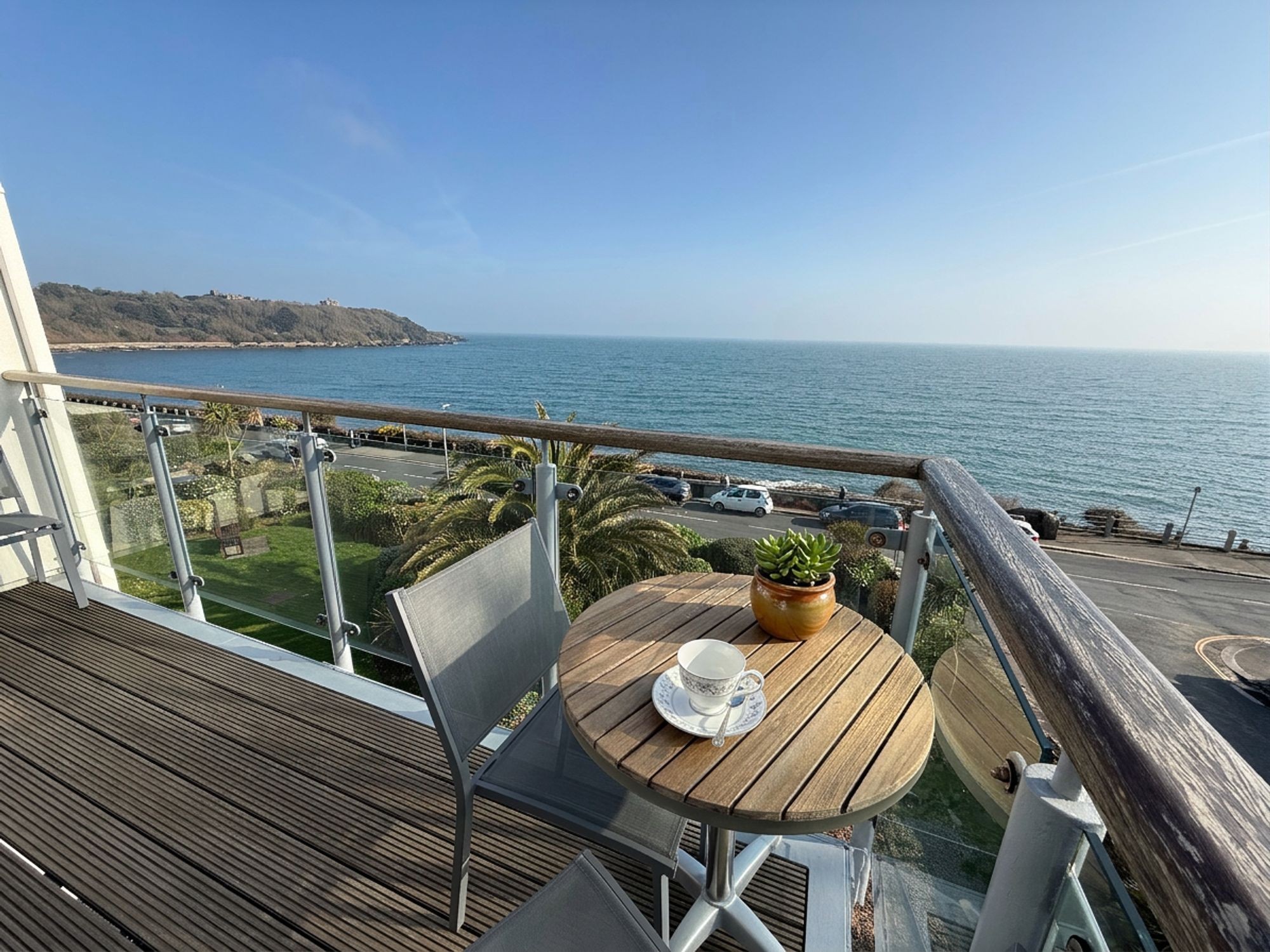 Number 9’s situation is fantastic, set on the South and West second floor corner, in this prime, ‘pick of the crop’ position. The apartment is outstanding and the best we have seen for a long time, with its combination of position, impeccable presentation, style and quality of fitment and finish. The lounge/dining room is a generous size and wonderful to be dual aspect and so sunny with unbeatable views and access onto a generous balcony. The kitchen was thoughtfully conceived and fitted in 2019 with silestone worktops, ‘Villeroy and Boch’ floor tiles and ‘NEFF’ appliances. The bathroom and en suite are top notch and fitted in 2023. The master bedroom is of a generous size and sea facing, with French doors onto a Juliette balcony. What a room to wake up in!