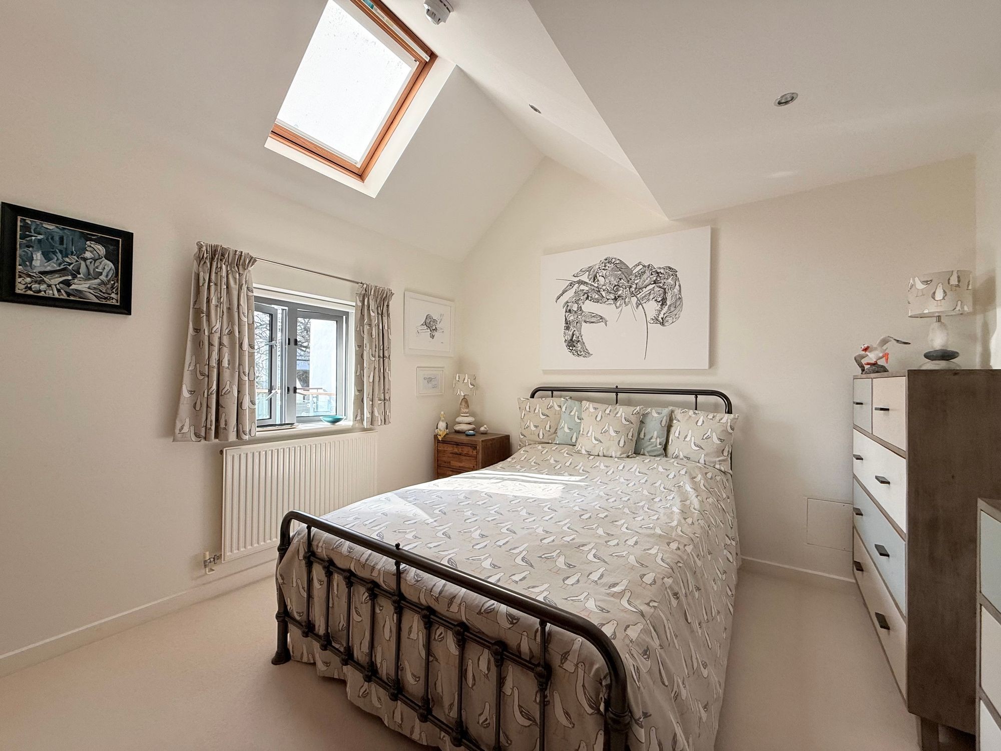 A super room, partially vaulted to a 9'8'' high vaulted ceiling with Velux double glazed roof window as well as the double glazed side window looking to sea and coast. Radiator. Spotlit ceiling.