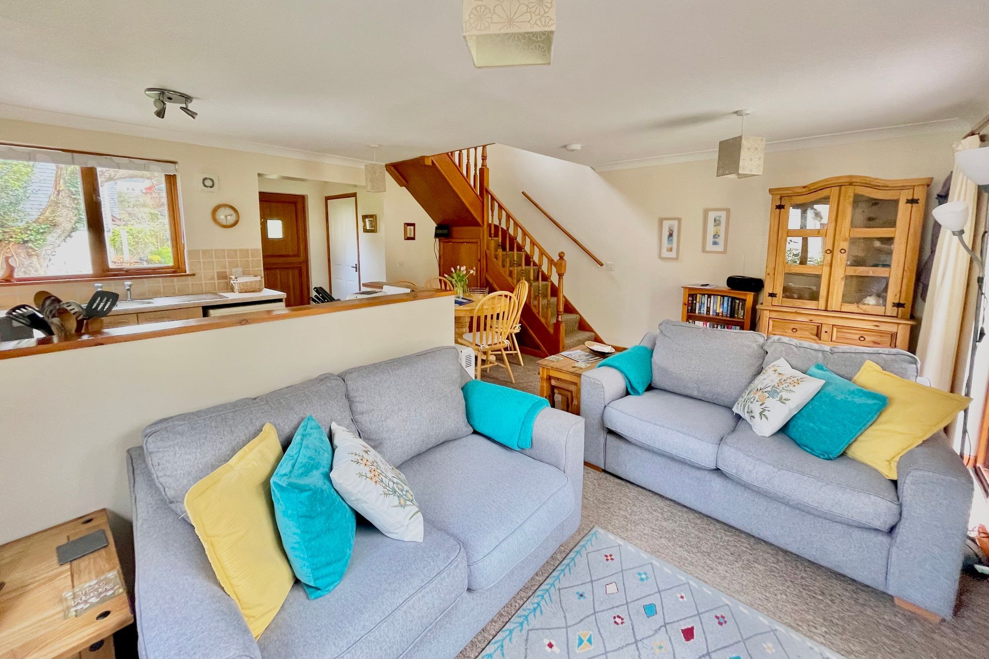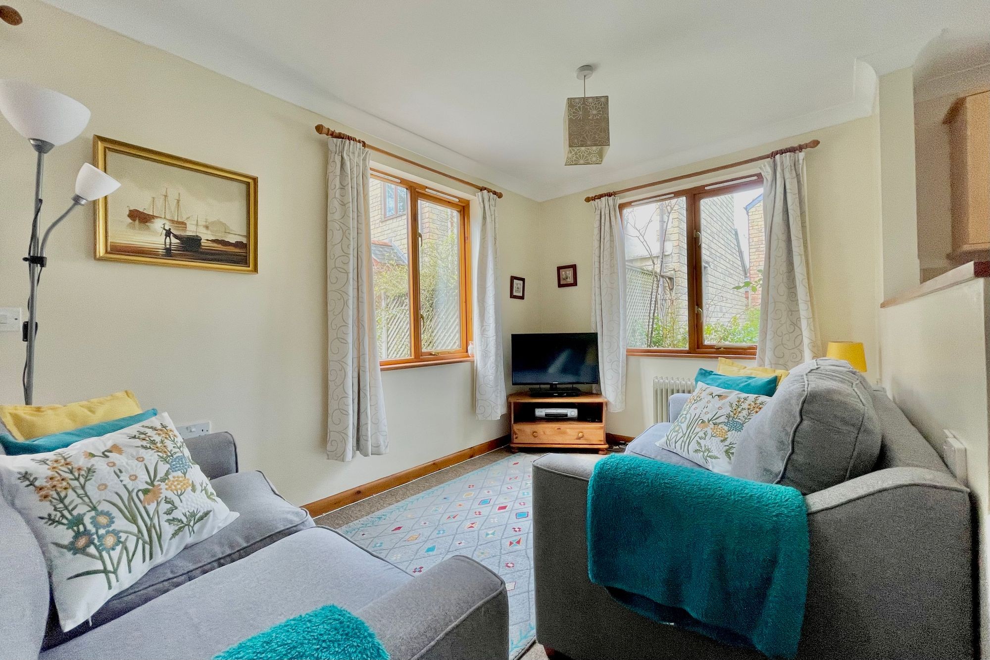 Accommodation is nicely presented with two bedrooms and a bathroom upstairs and a cloakroom/WC and a sociable living room and kitchen, out via a stable door to the terrace and communal garden.