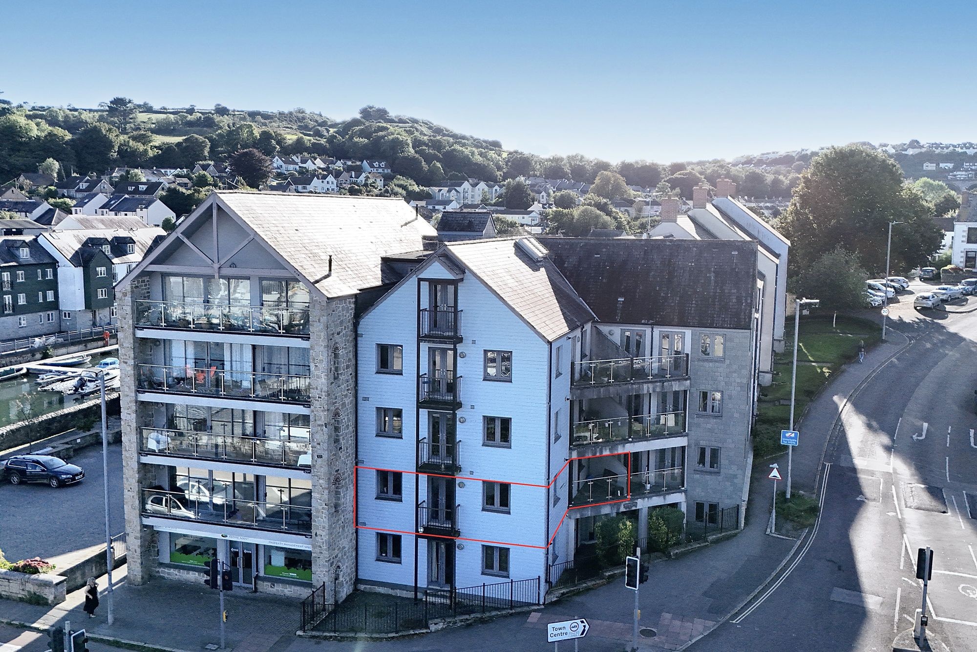 Situated on the first floor in the acclaimed Anchor Quay Development, this impressive two-bedroom apartment offers a prime position with views across Penryn River towards Trevissome and Flushing. The accommodation comprises an open-plan living space with two sets of French patio doors leading out onto the covered balconies with amazing river views. A modern kitchen with a range of units and integrated appliances. There are two spacious bedrooms, both are of a good size, with the master having a double-glazed window with river views and a modern en-suite shower room. A great permanent residence or investment property - viewing is highly recommended.