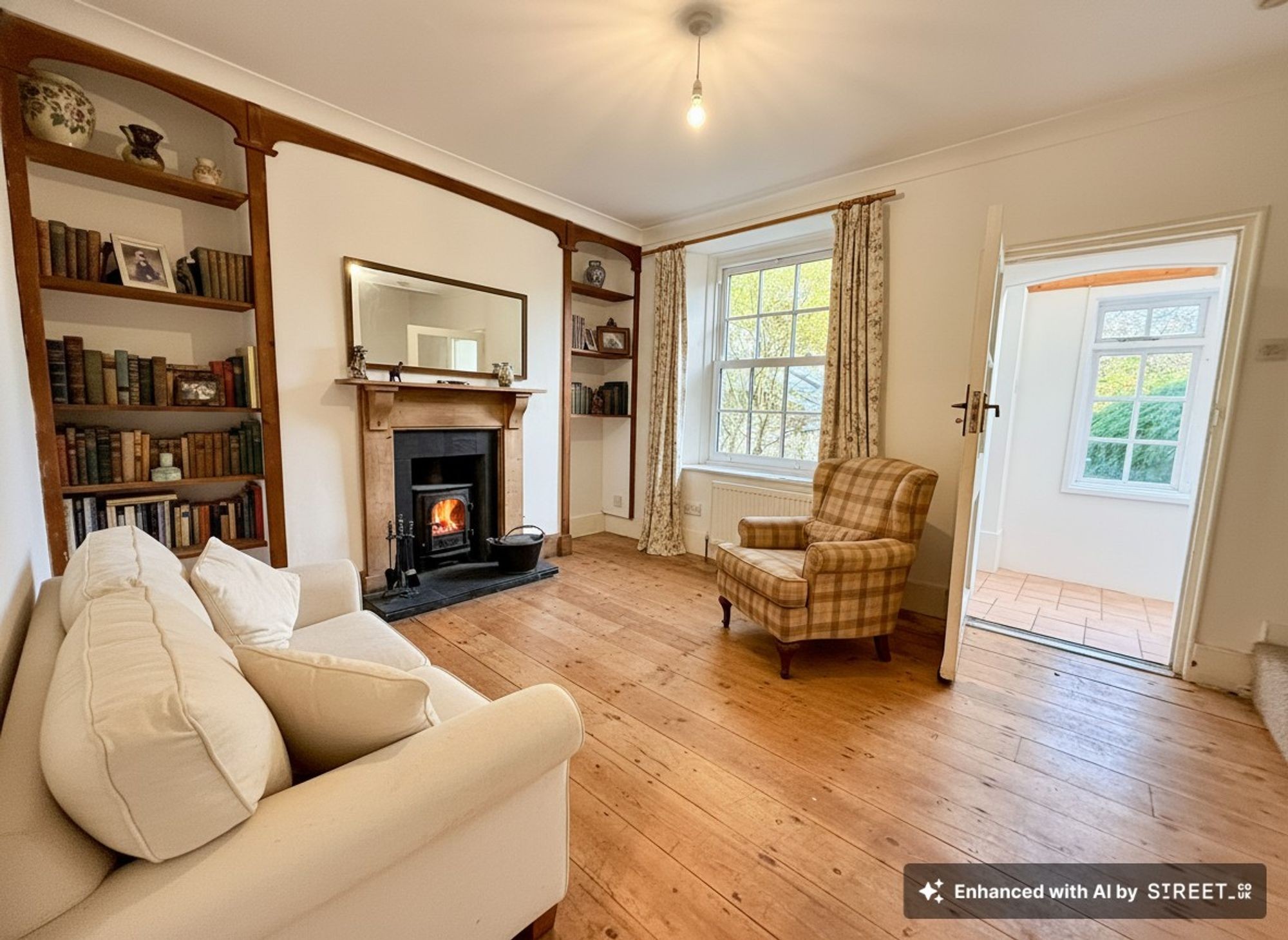 UPVC double glazed multipane, sliding sash effect window to rear, overlooking the garden. Radiator. Ledged and braced pine door to walk-in .....