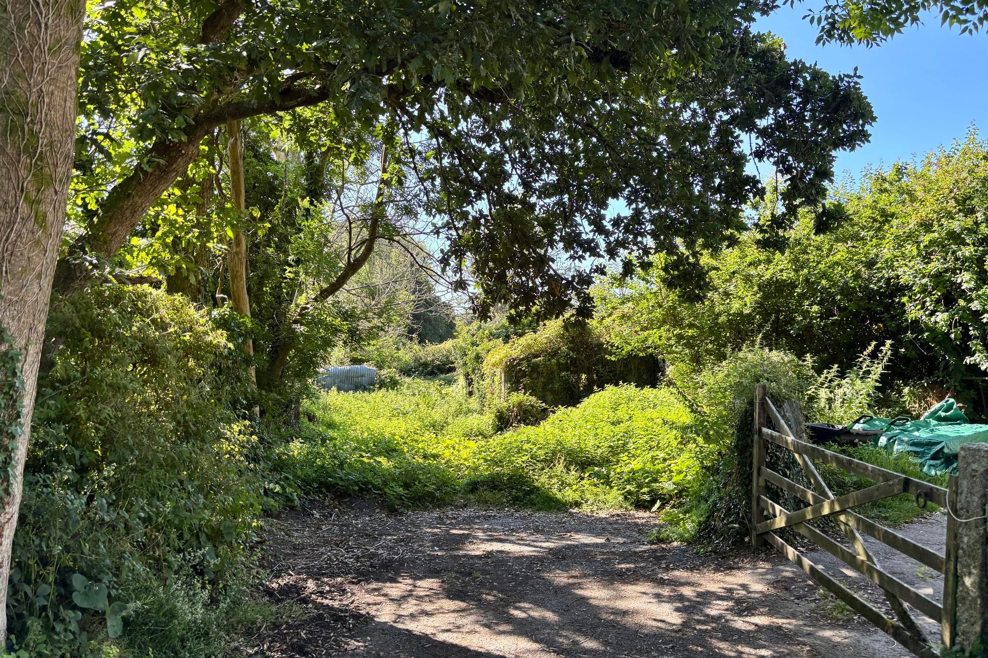 The site has been staked to indicate the plot size. The Barn has right of access over the Lane to enter.