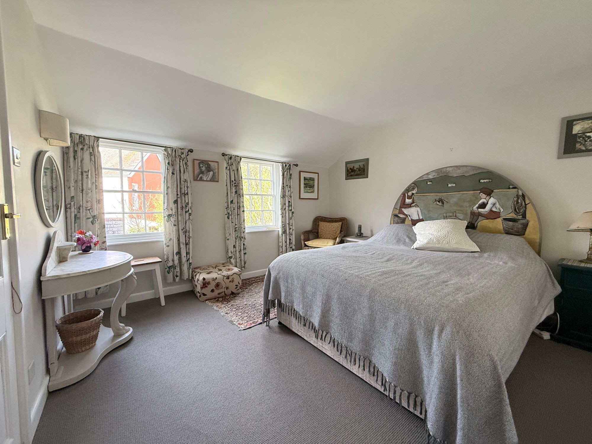 Twin, twelve pane sash windows to front overlooking the courtyard garden. Extensive built-in wardrobe and cupboard space. Radiator.