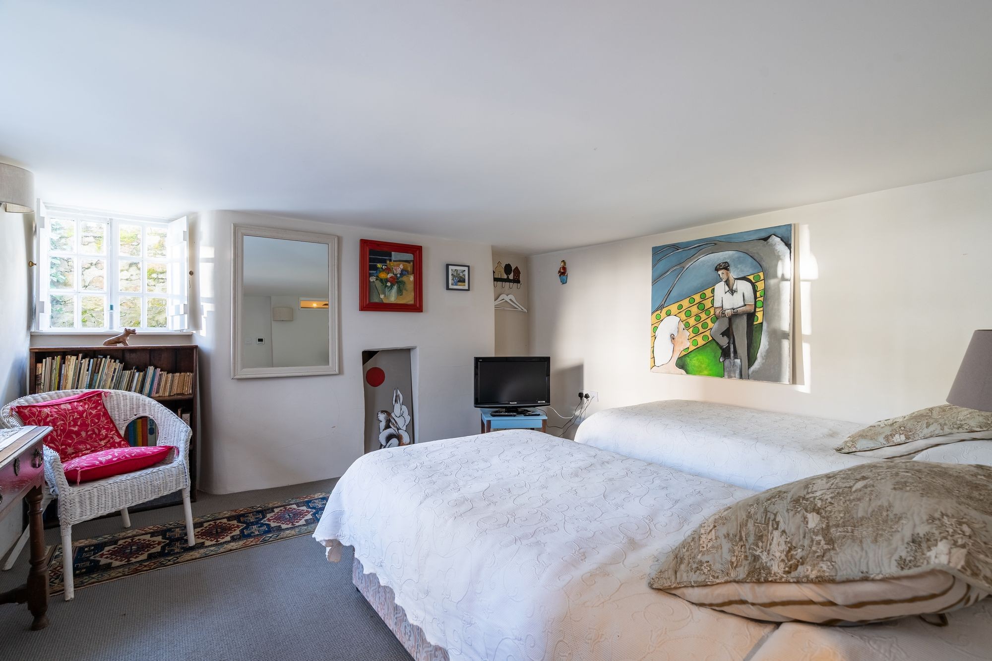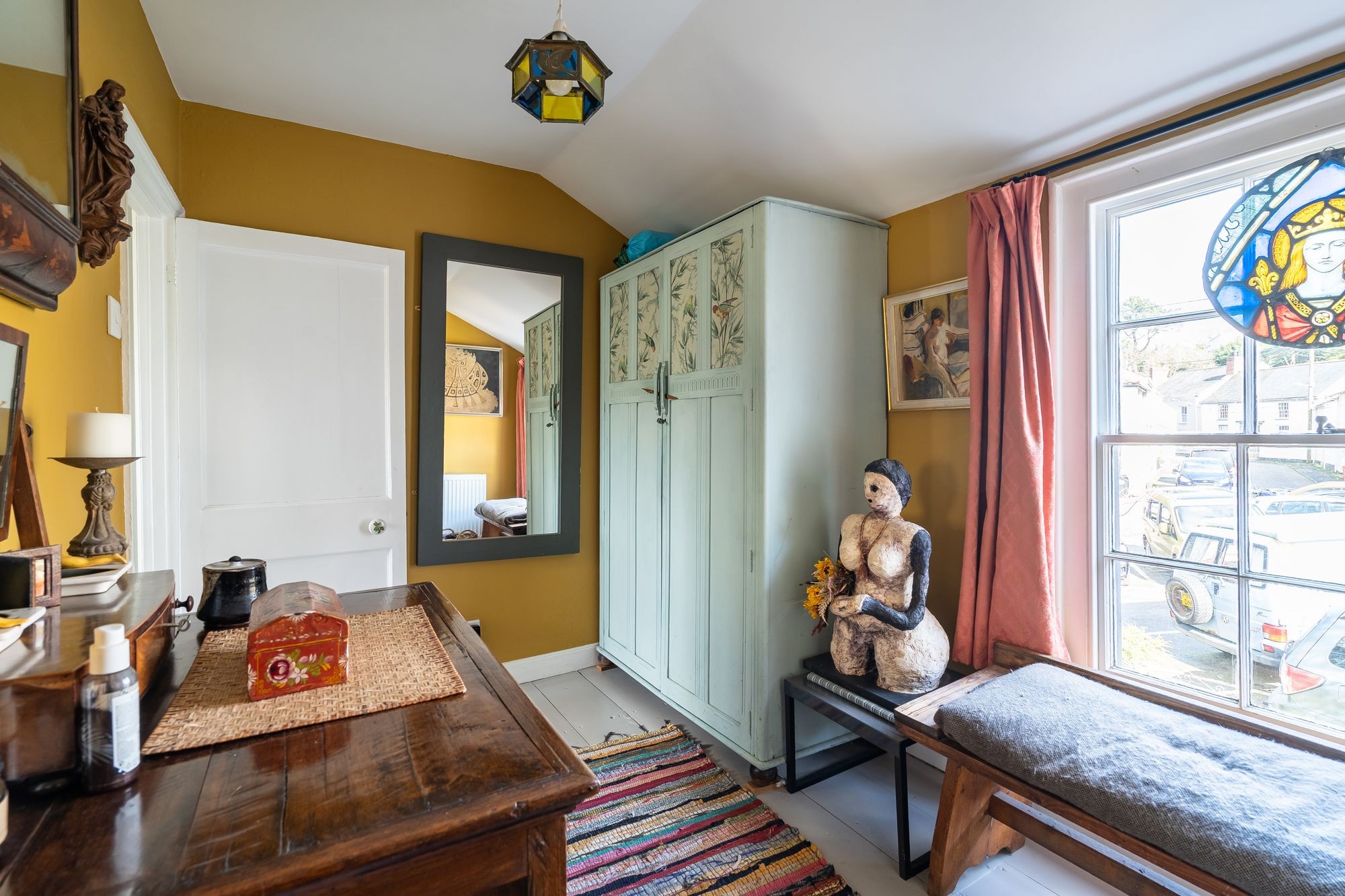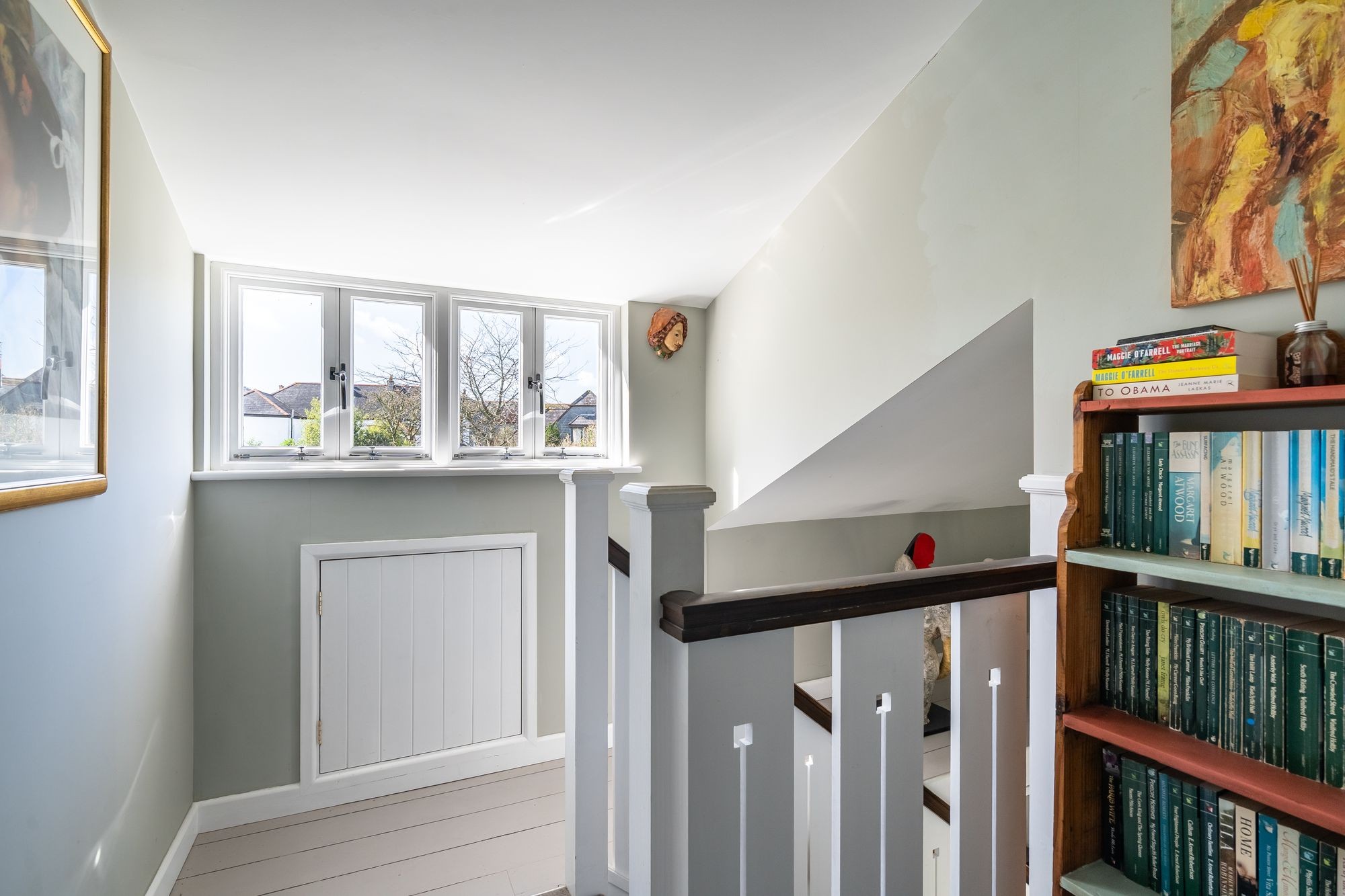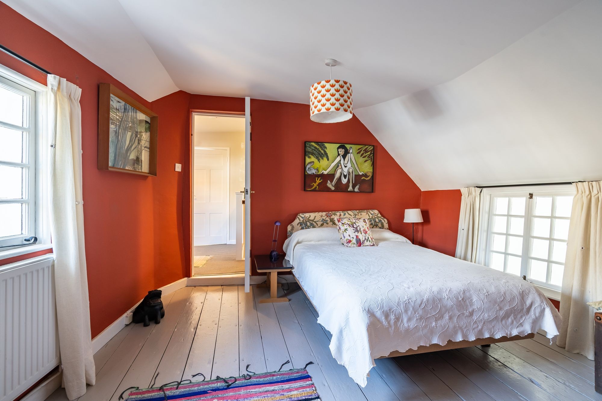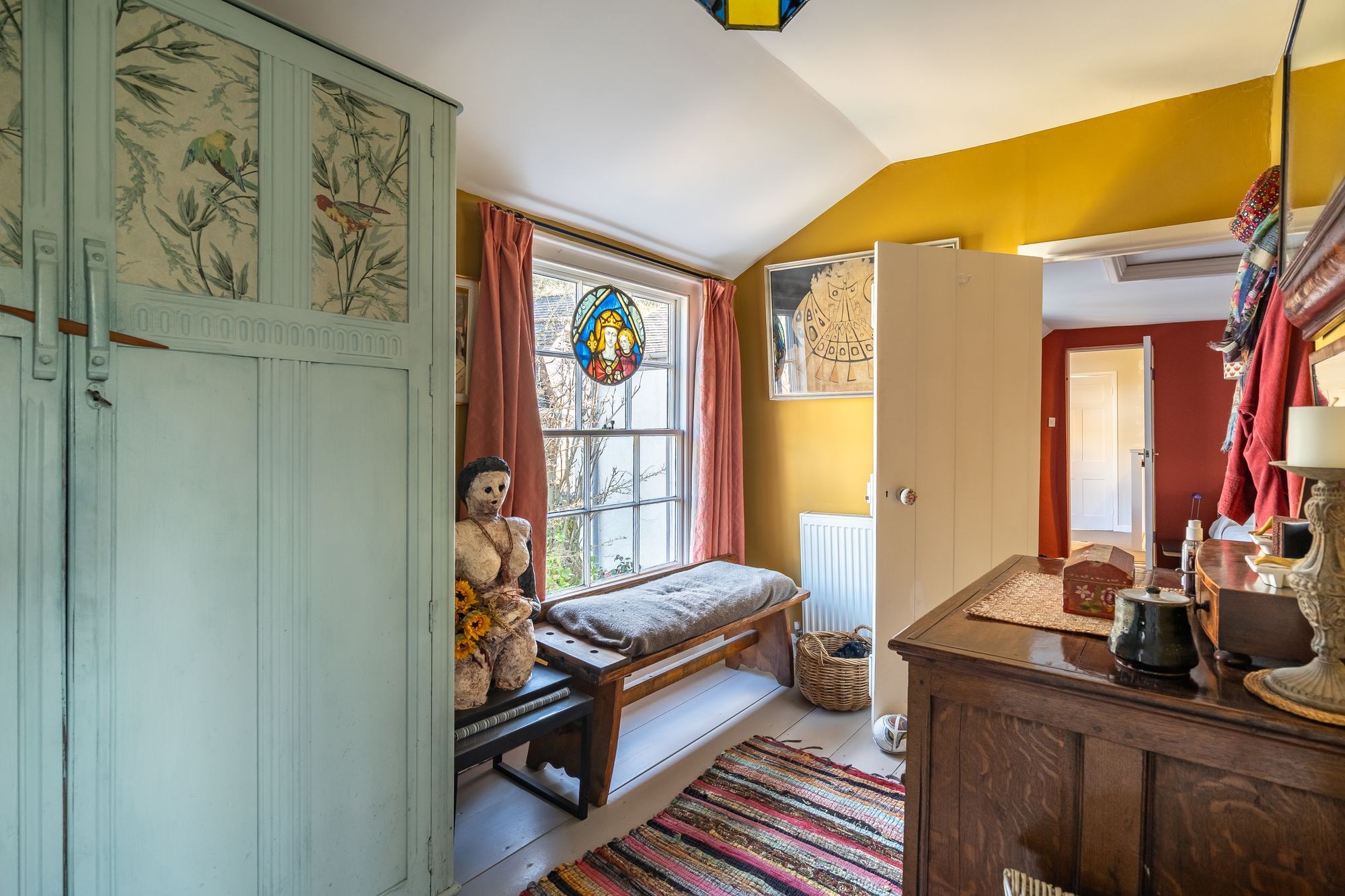 Painted floorboards. Sixteen pane window to front and sixteen pane window into studio. Radiator. Access to loft space Built-in wardrobe. Doorway to…