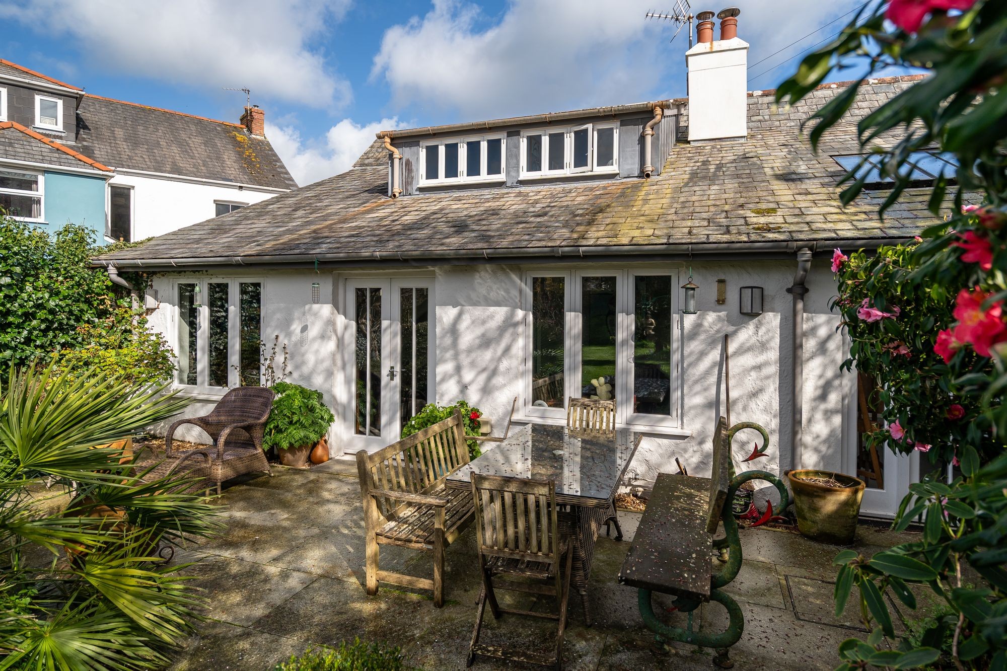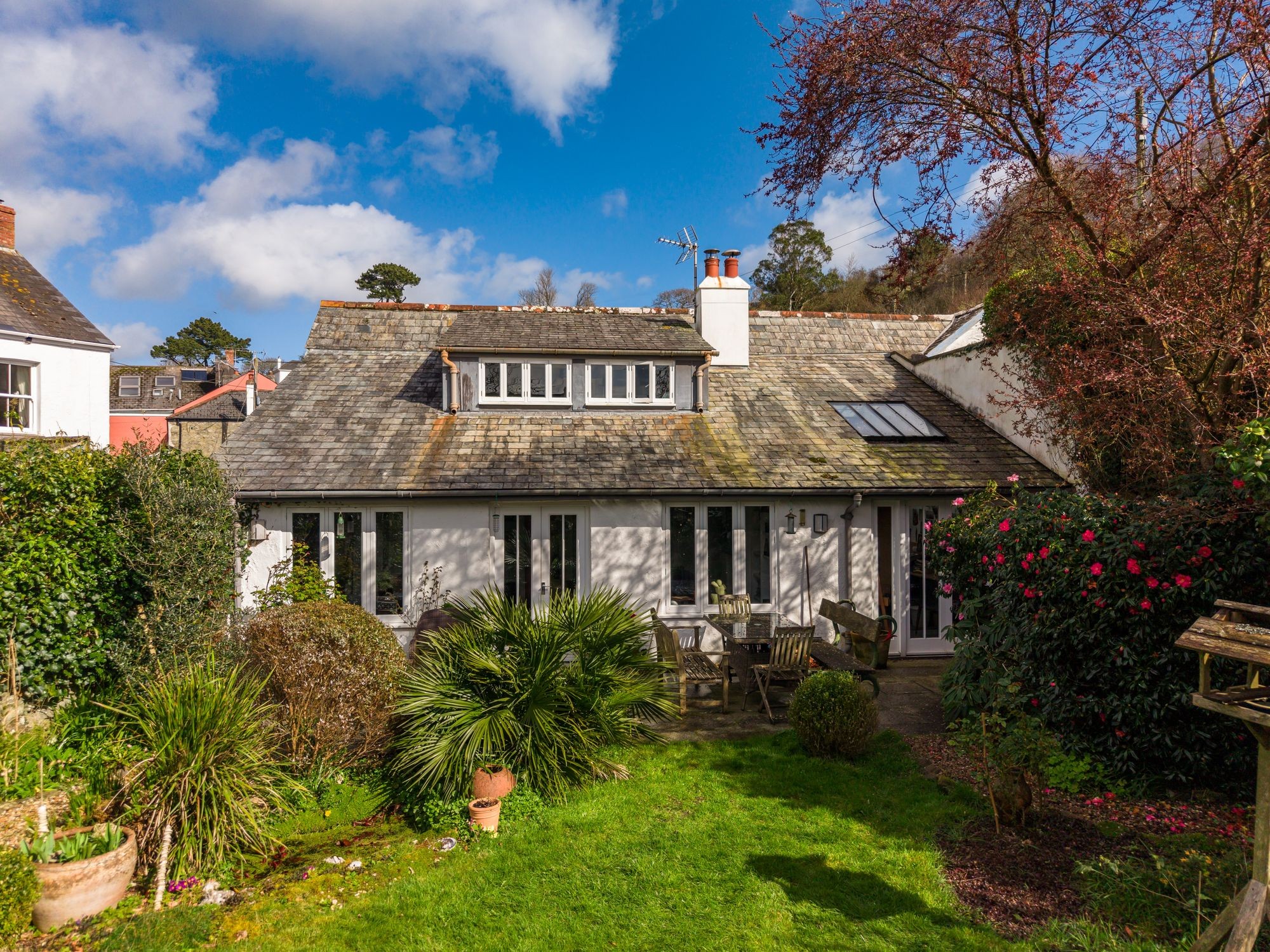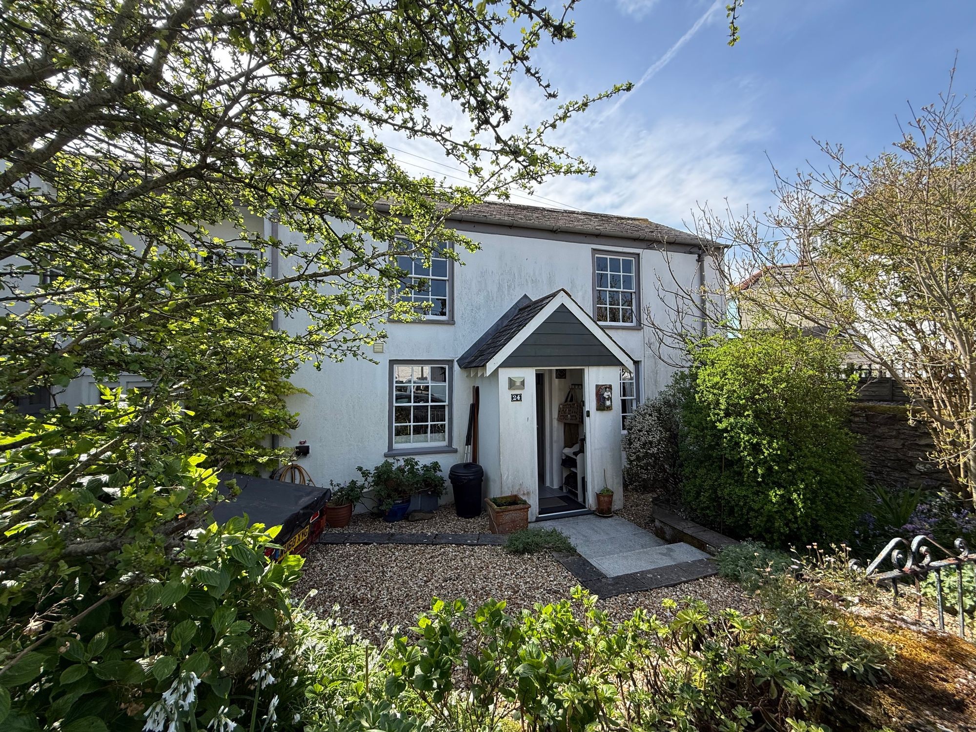 We are excited to be selling this fantastic home. Of the 33 Grade II listed properties in Flushing, The Sands, 24 Coventry Road must be one of the oldest and most historic. It is so called because centuries ago The Sands lay beside the water, with its origins as a humble ferryman’s cottage, plying trade between the banks of Falmouth and Flushing. Flushing stands on land that has been owned by the Trefusis family since the 12th Century. The village as a settlement dates back to the mid-17th century when John Trefusis engaged Dutch engineers to expand the village seawards, and build quays that would attract shipping. The village’s significance was greatly enhanced by the arrival of The Packet Service in 1688. By the late 1700s there were up to 40 Packet ships and most of their captains and crew lived in Flushing and the Trefusis family developed the village to accommodate this. The Sands today bears little resemblance to the original dwelling here. It has evolved in recent years into a delightful, spacious home, restored to exacting standards and expanded with no expense spared, to an inspired design, with work carried out by respected Marnick builders. Accommodation is flexible with its two staircases and four/five bedrooms including a bedroom suite on the ground floor. ‘Living’ space is delightful and sociable where the 24’ sitting room and inspiring studio flow beautifully out onto the granite terrace and walled garden, through French Doors. The bespoke kitchen/dining room is in duck egg blue, with an oil-fired Range and floors on the ground floor are porcelain tiled. The standards of presentation are exceptional, and all is comfortable and luxurious with three shower/bathrooms and a utility room. To the rear, facing South and West, is a wonderfully established and richly stocked walled garden with quality workshop at its end. All in all, an outstanding village home, of a quality and style that will likely impress the most discerning of home buyers.