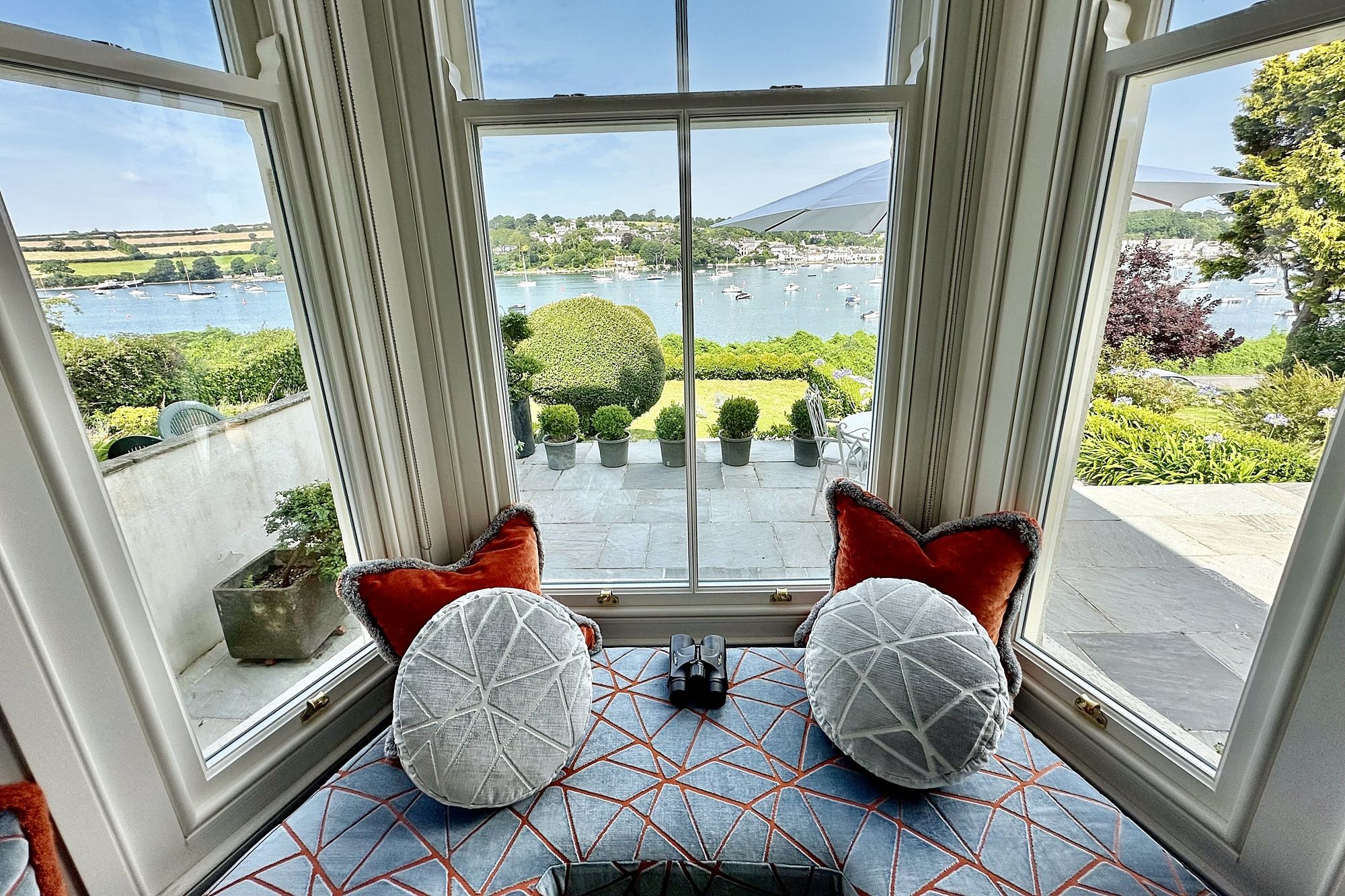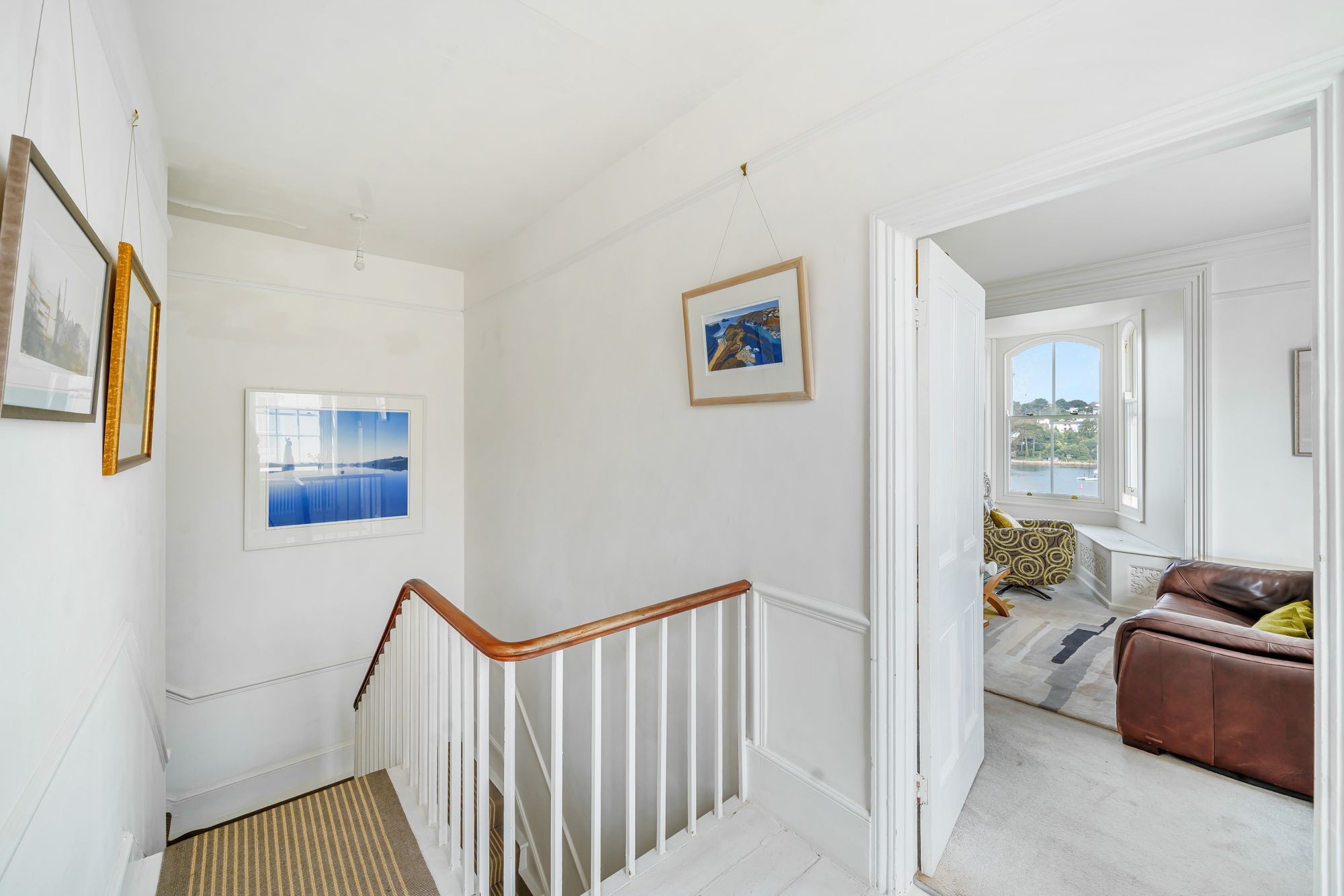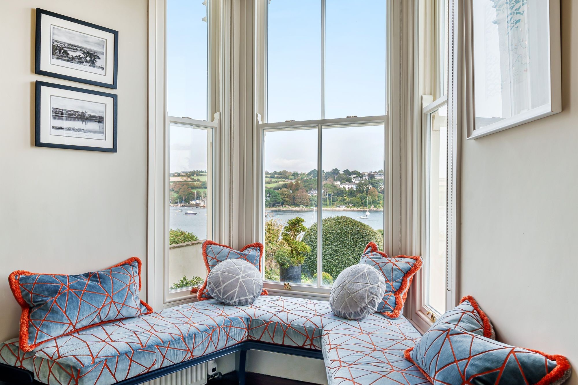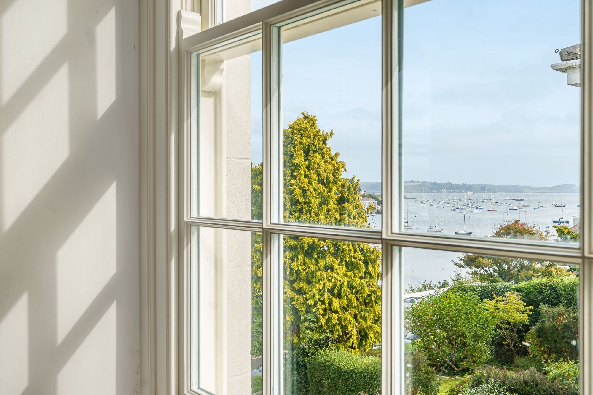 Elegant and historic home retaining much of its period charm and detailing. The property is enviably situated overlooking the water, with outstanding views from two floors extending to Trevissome, over the river to Flushing, Falmouth harbour and the estuary to Roseland. The flexible accommodation is arranged over three storeys including the original servant’s attic room and as many as six or seven bedrooms, together with many reception room options and the most enviable modern luxury kitchen. The first-floor sitting room is beautifully proportioned and with fine triple sash bay windows overlooking the water and spectacular views. Our vendors have embarked on a series of works during their ownership with many updates remaining hidden but the new double glazed hardwood sash windows skilfully hand-made and fitted with care and attention showcase the view and keep the cold at bay. A special mention must go to the amazing kitchen, simply stunning with no expense spared and full of quality integrated appliances, an absolute delight. There are so many upgrades and modernisations done that we have a separate information sheet to accompany viewings. To the outside, a huge terrace looks over the water and offers morning and evening sunshine, to the side is a further terrace ideal for al-fresco dining. Like many towns and cities across the country parking is quite difficult and most properties in such a prime location do not have off-road parking but there is unrestricted parking on the road right in front of Crown House, very occasionally owners may have to park up to a few hundred yards away. Crown House is an absolute gem. It blends space, elegance, absorbing views and a great and convenient location – a true rarity and highly recommended.