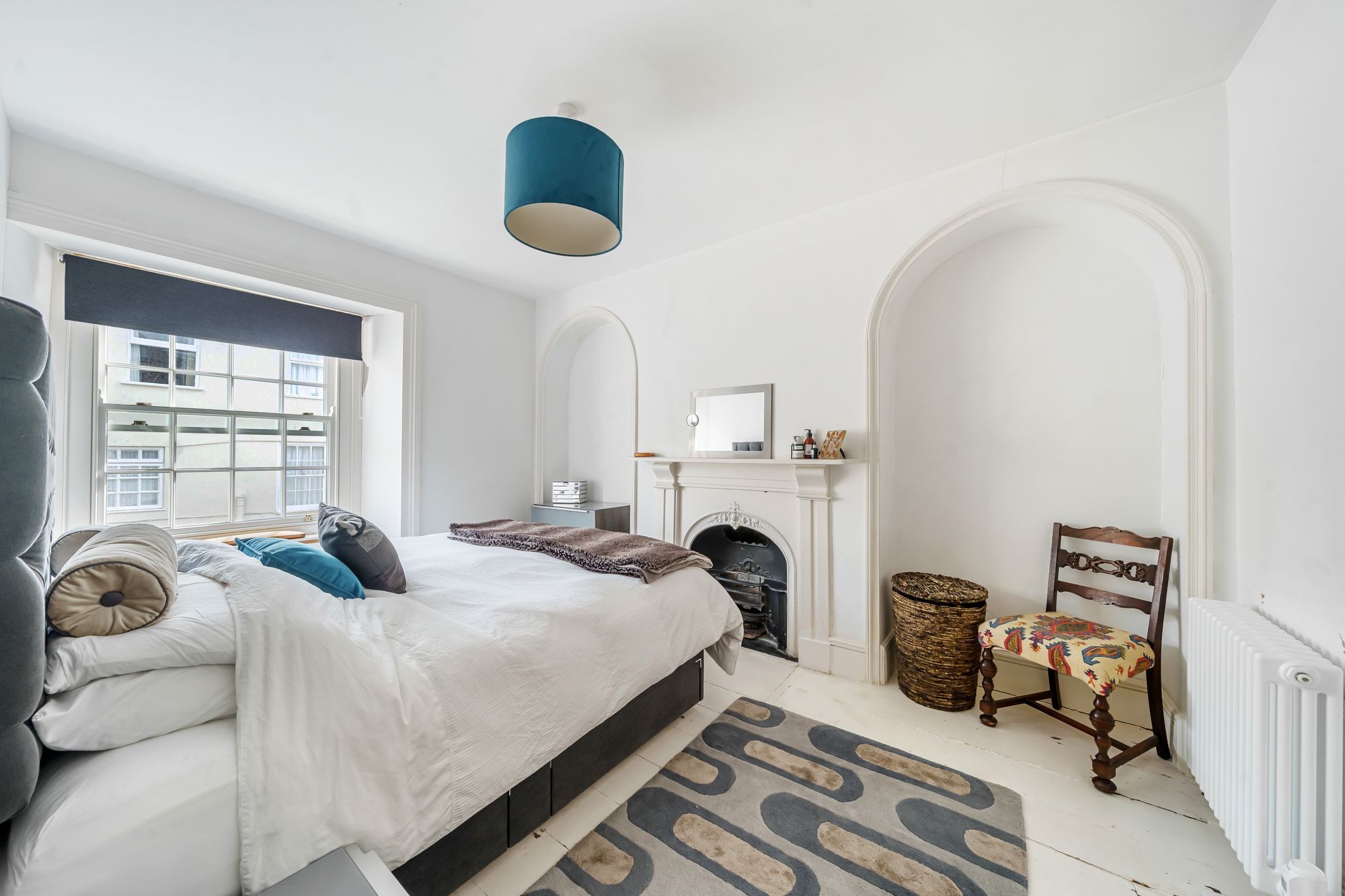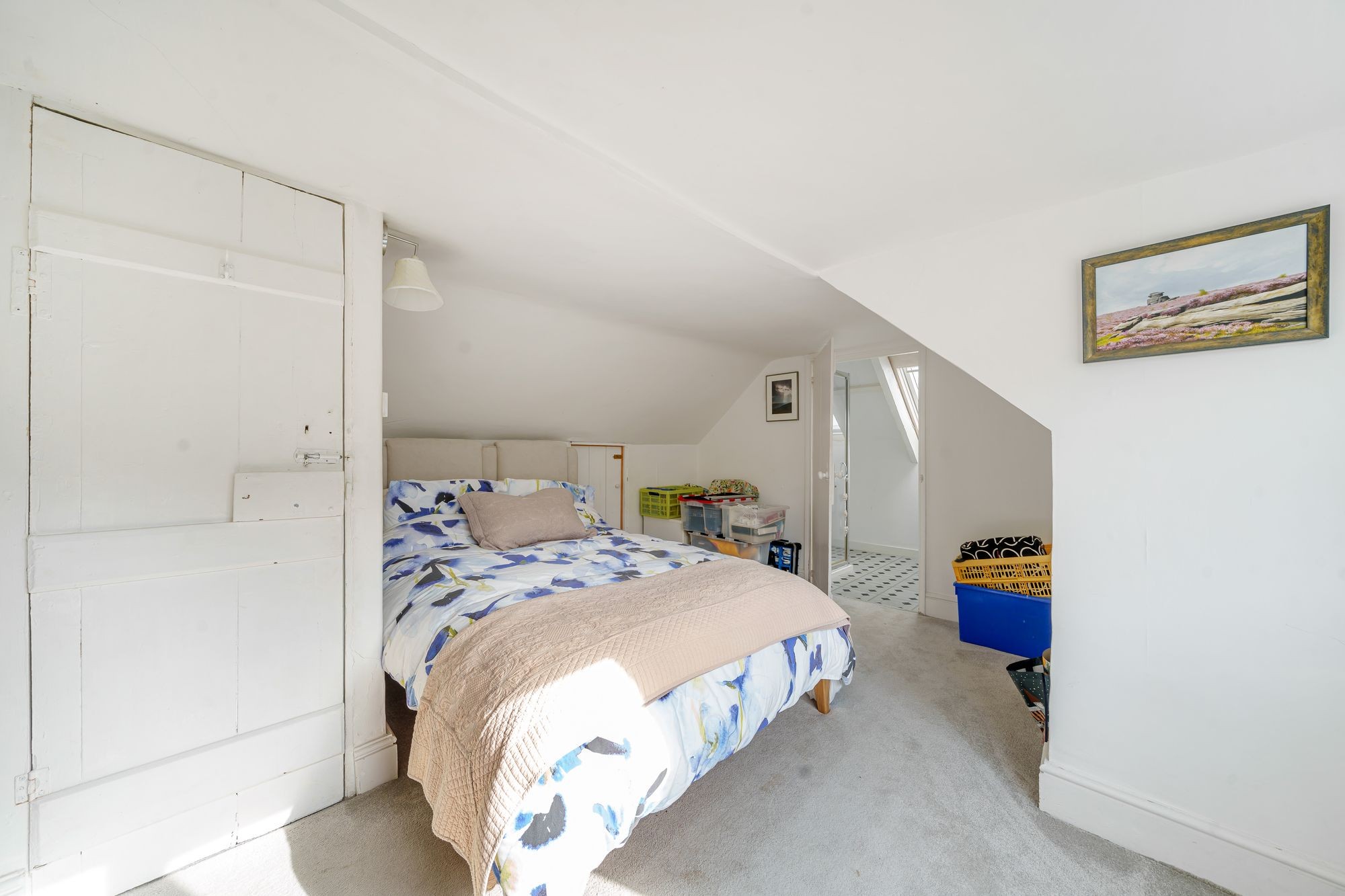 Large double bedroom with sixteen pane sash window to side. Period cast iron fireplace with timber surround and arched side recesses. Old school side radiator. Door to.....