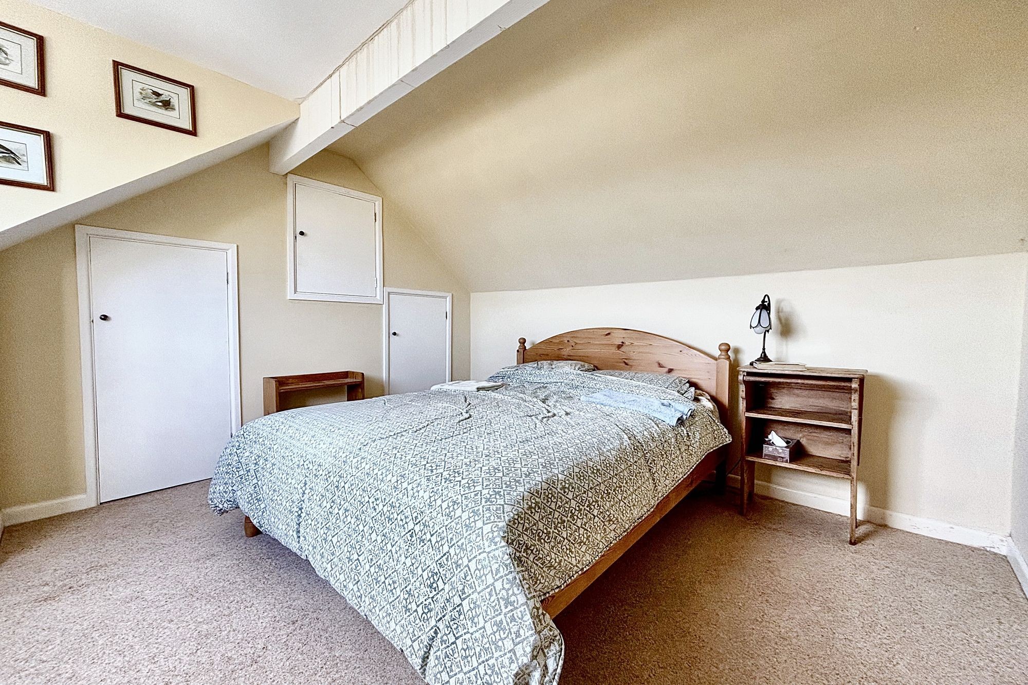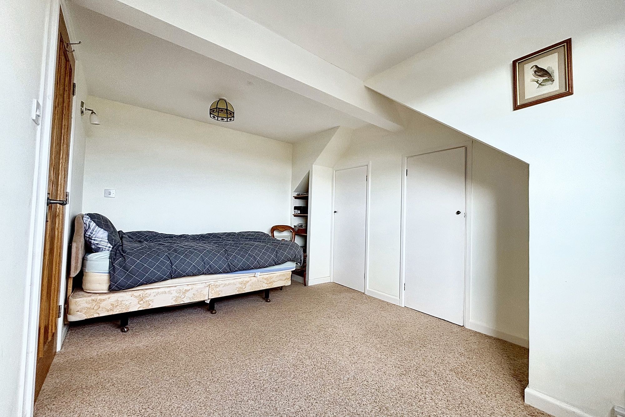 Dormer window to the front with nice far reaching countryside views. Two large cupboards/wardrobes give access to a loft storage area. Radiator.