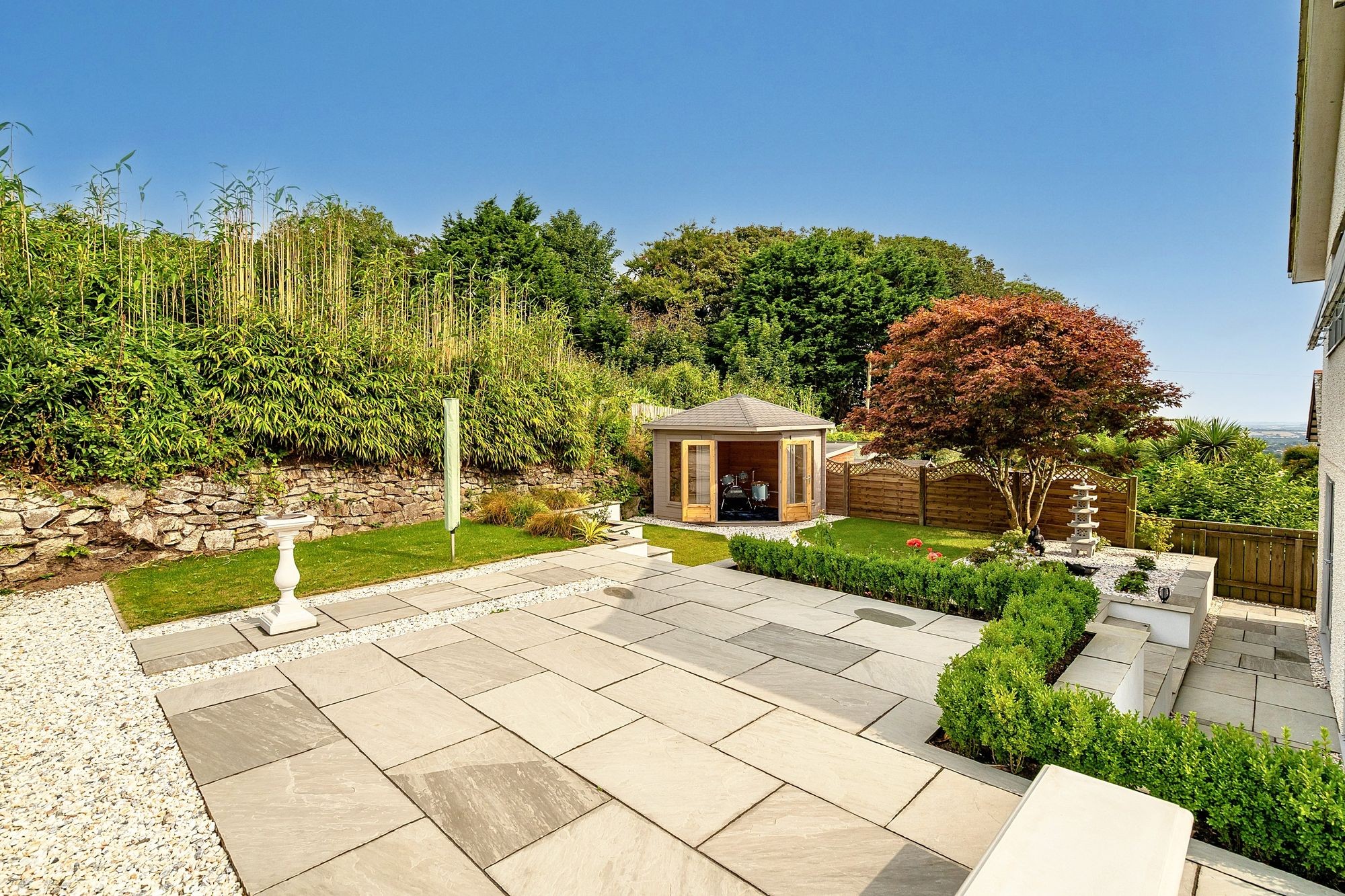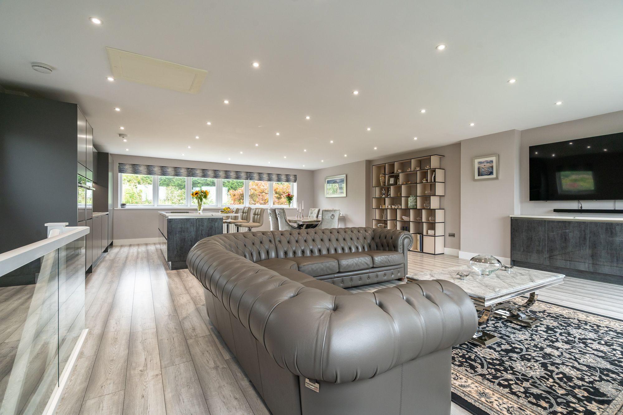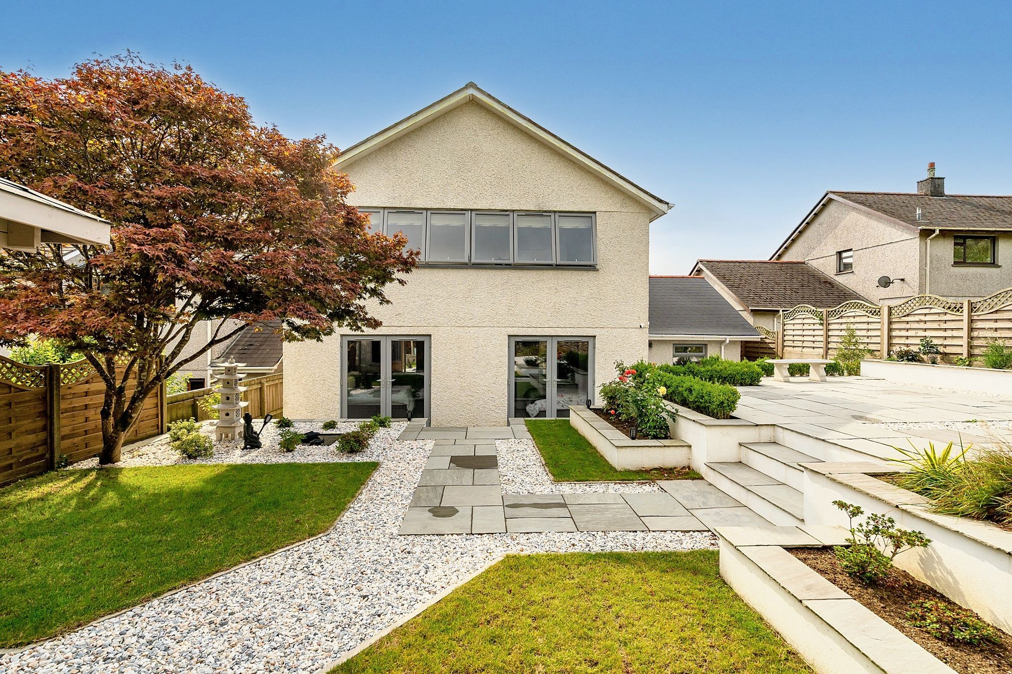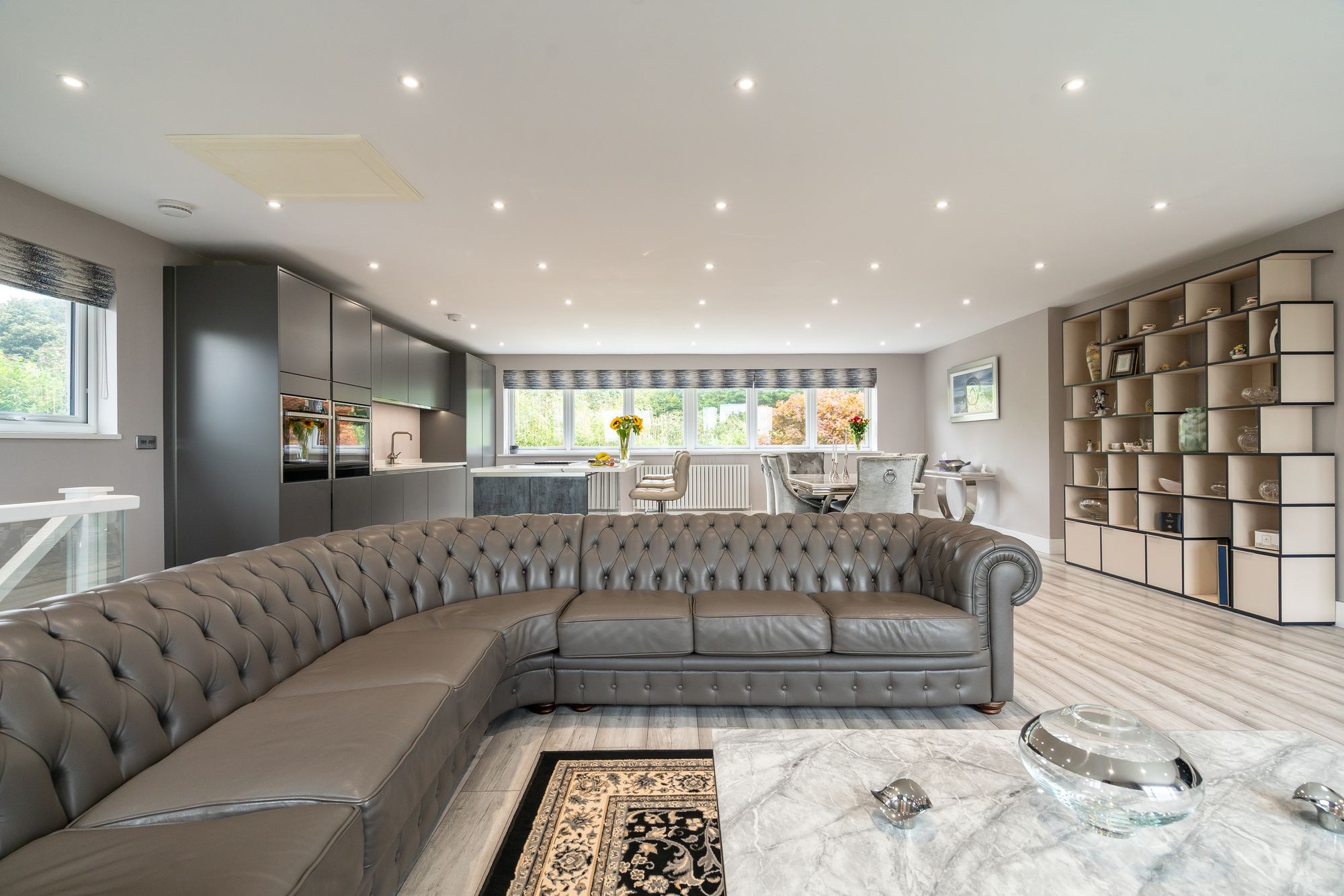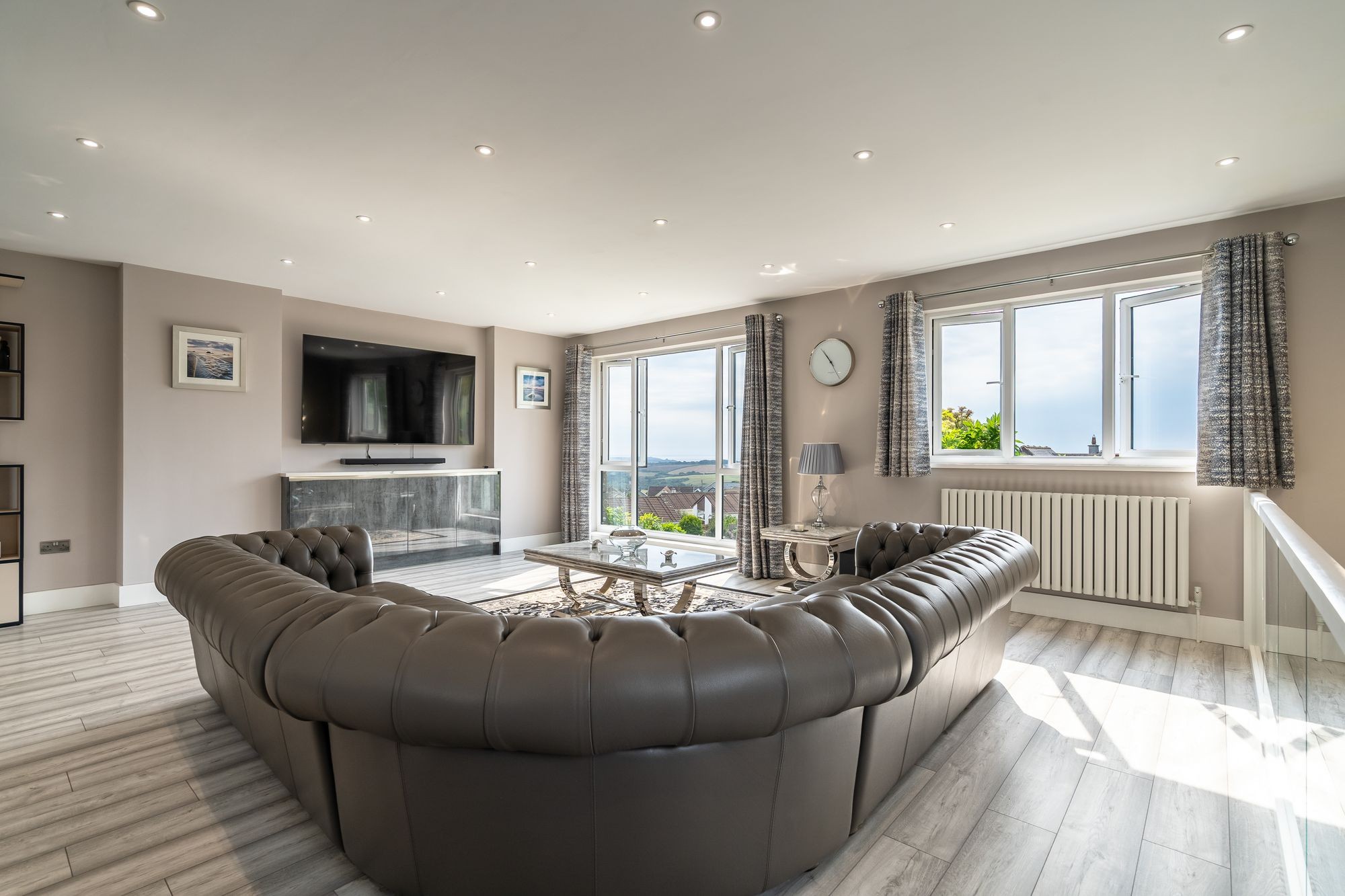 So different from what was originally built, this detached family home has been extended and updated and is stunningly presented. Looking like a new home and presented like a "show house" there are three double bedrooms on the ground floor with all three having modern en-suites. On the first floor there is a huge open -plan living room that is almost 800 square feet in size and full of natural light thanks to windows on three side. To the front there is a far reaching view across countryside to the sea and to the rear is a bank of windows with views over the garden. The kitchen is superb and a delight for any chef. Landscaped gardens front and rear plus off road parking for possibly five vehicles and a large garage. This property is unbelievably well presented and we would highly recommend internal viewing. We have produced a detailed walk-through, talk-through video tour for your interest.