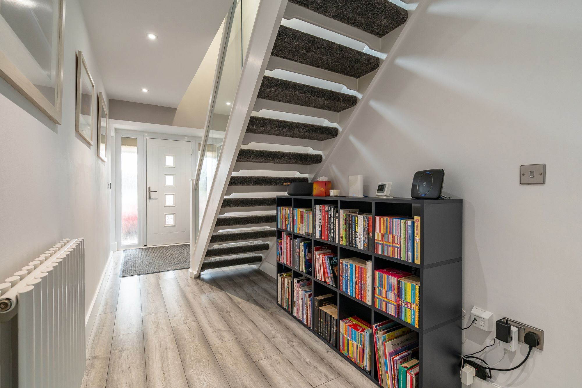 Doors to three en-suite bedrooms, utility room, cloakroom WC and access to the garage and rear garden.