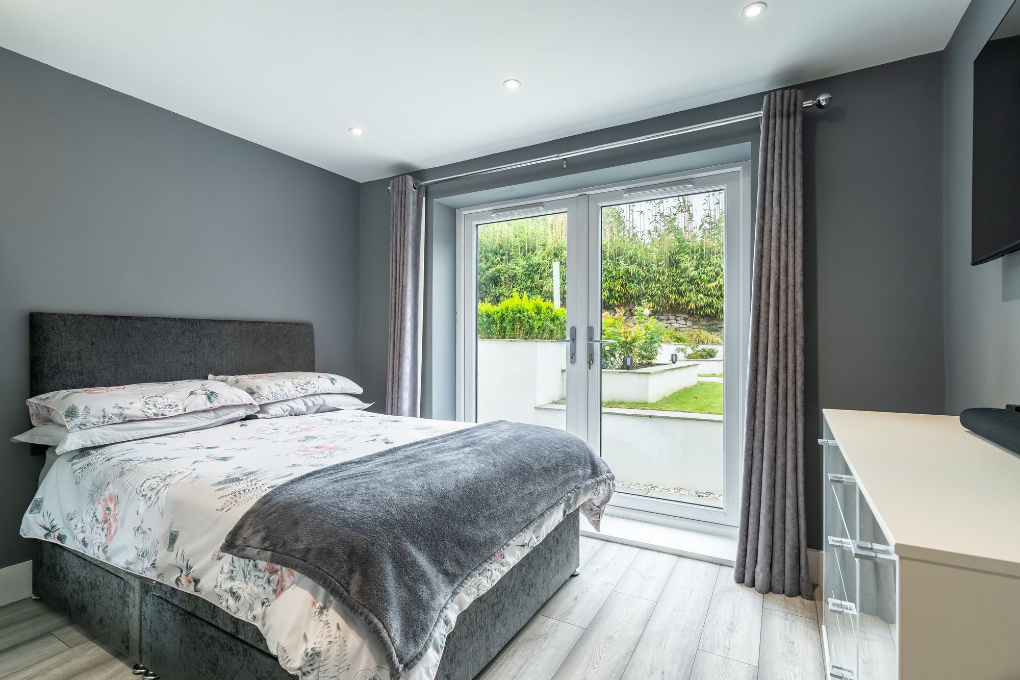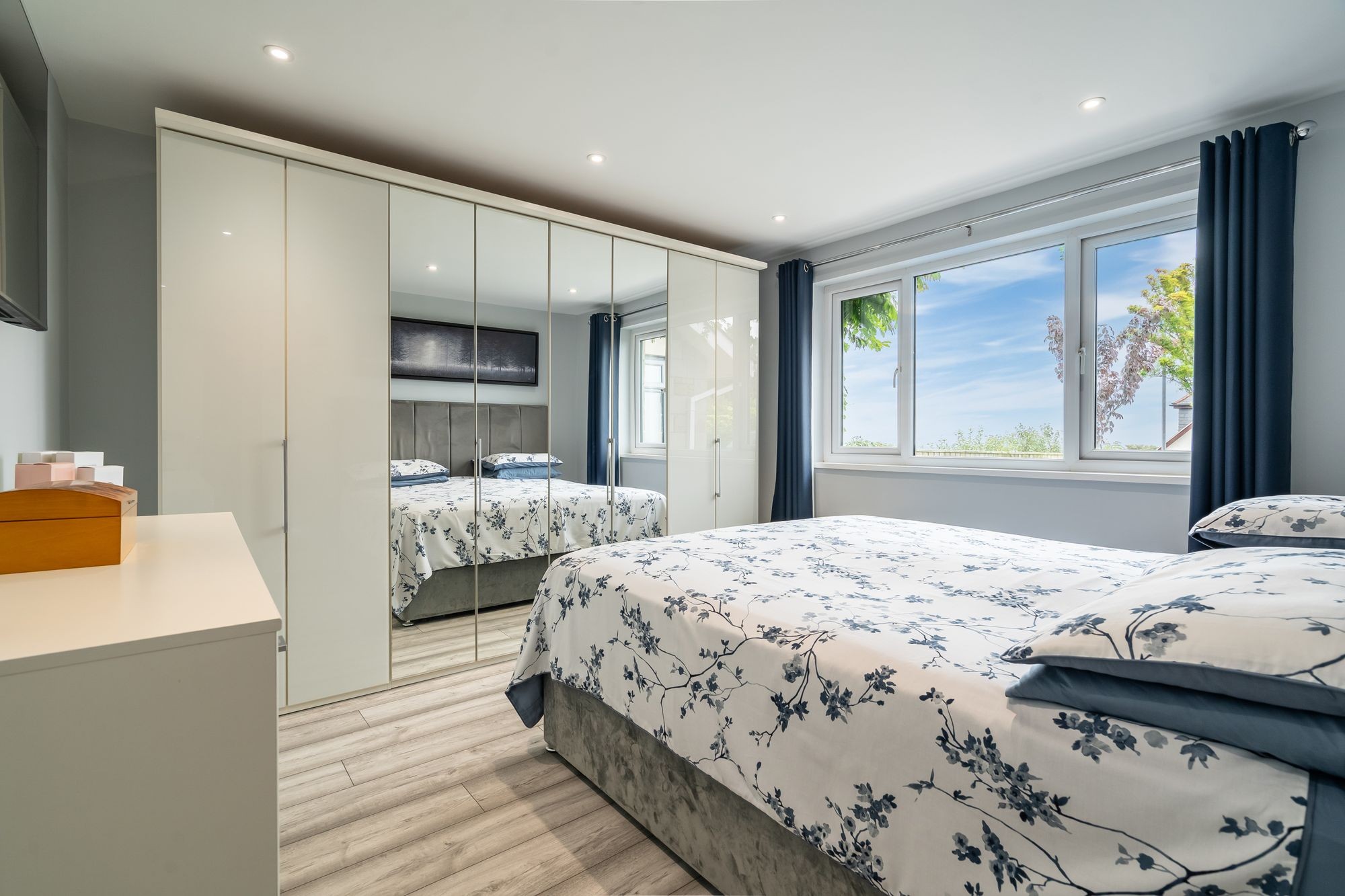 French doors out to the rear garden. Freestanding mirrored wardrobes.